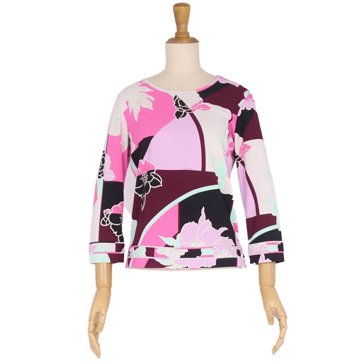 商品名 【美品】レオナール LEONARD SPORT Tシャツ カットソー ロングスリーブ 花柄 総柄 ジャージー トップス レディース 38(M相当) マルチカラー【中古】