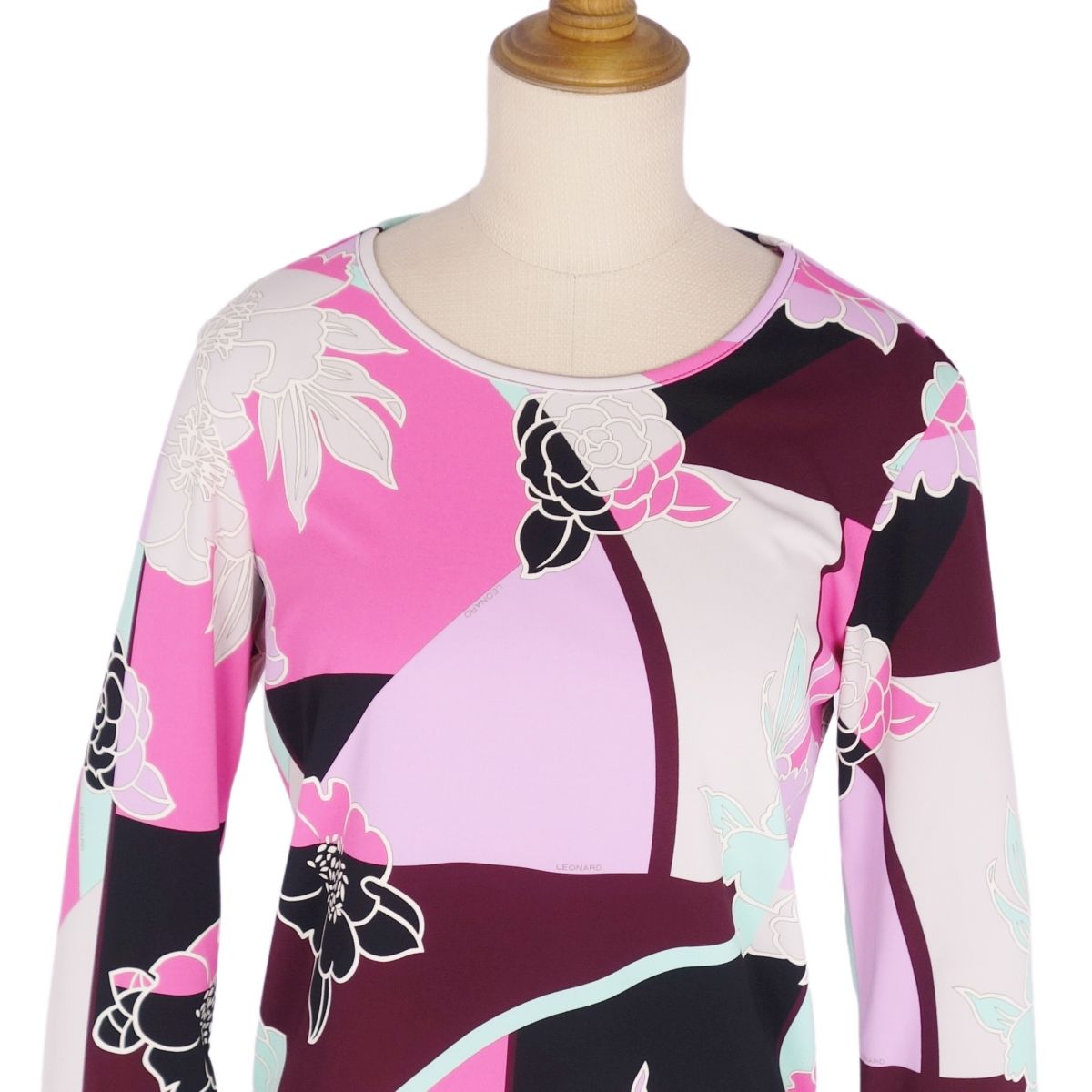 レオナール LEONARD SPORT Tシャツ カットソー ロングスリーブ 花柄 総柄 ジャージー トップス レディース マルチカラー サイズ38(M相当)