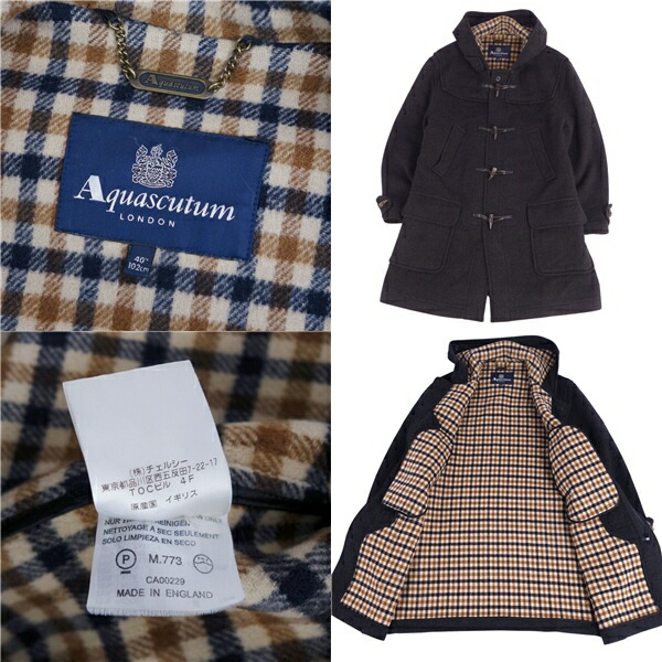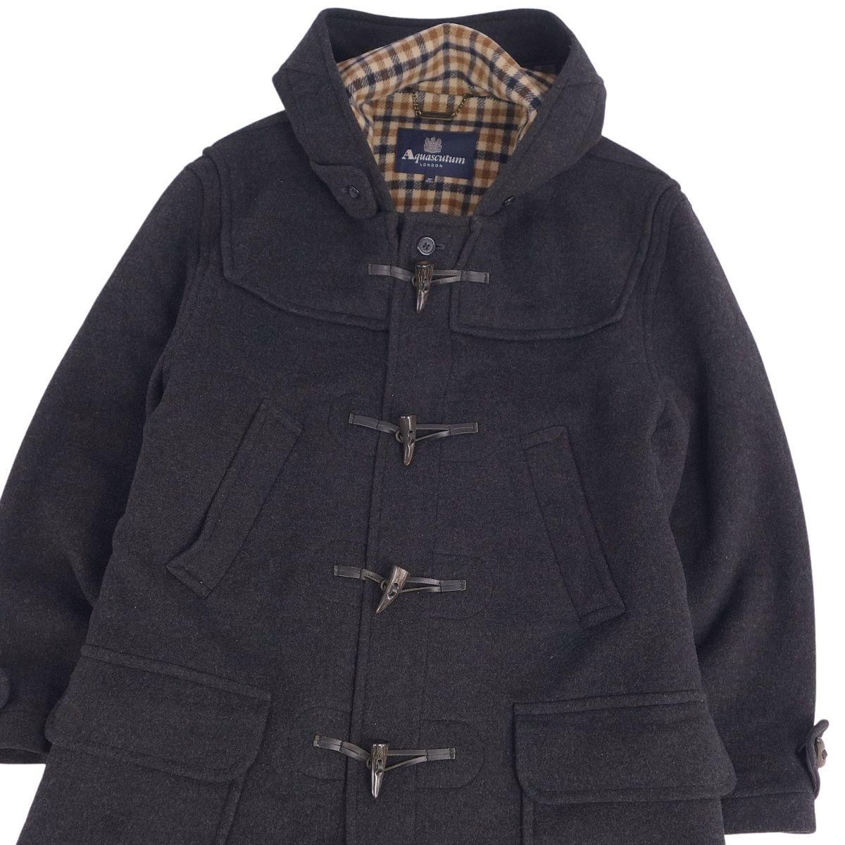 アクアスキュータム Aquascutum LONDON コート ダッフルコート 裏チェック ウール 英国製 アウター メンズ ブラック サイズ40(L相当)
