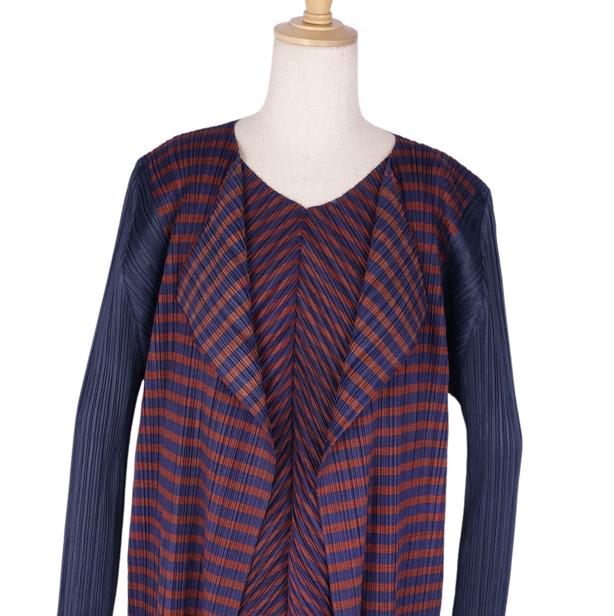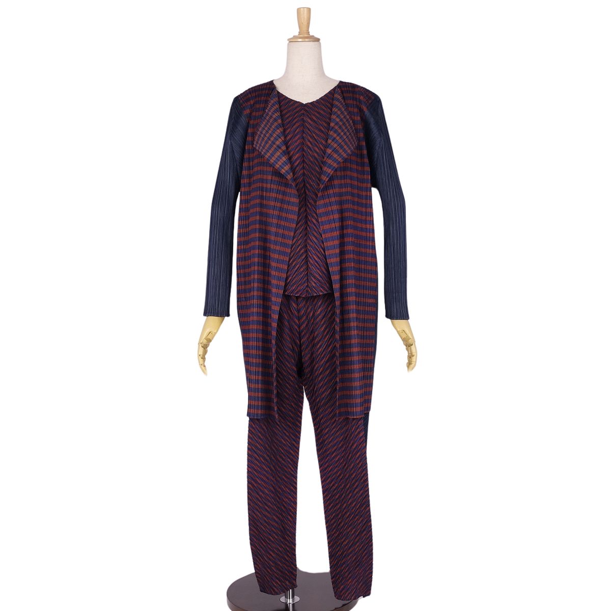 プリーツプリーズ イッセイミヤケ PLEATS PLEASE セットアップ 3ピース カーディガン ブラウス パンツ プリーツ レディース ネイビー/レッド サイズ3(L相当)