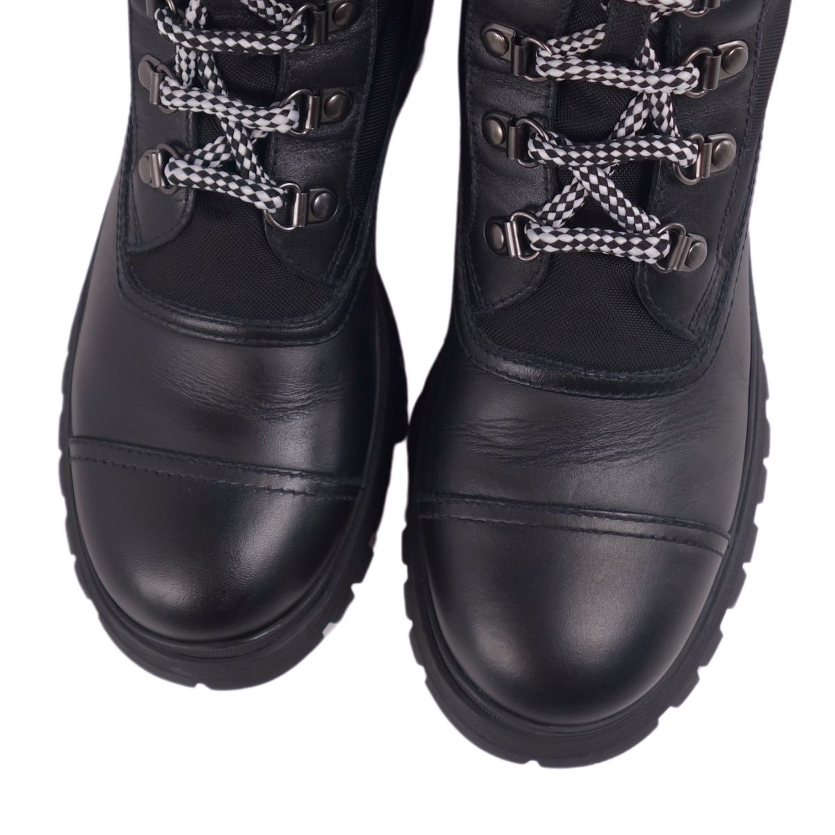 プラダ PRADA ブーツ エンジニアブーツ レースアップ カーフレザー ナイロン シューズ レディース ブラック サイズ36(23cm相当)