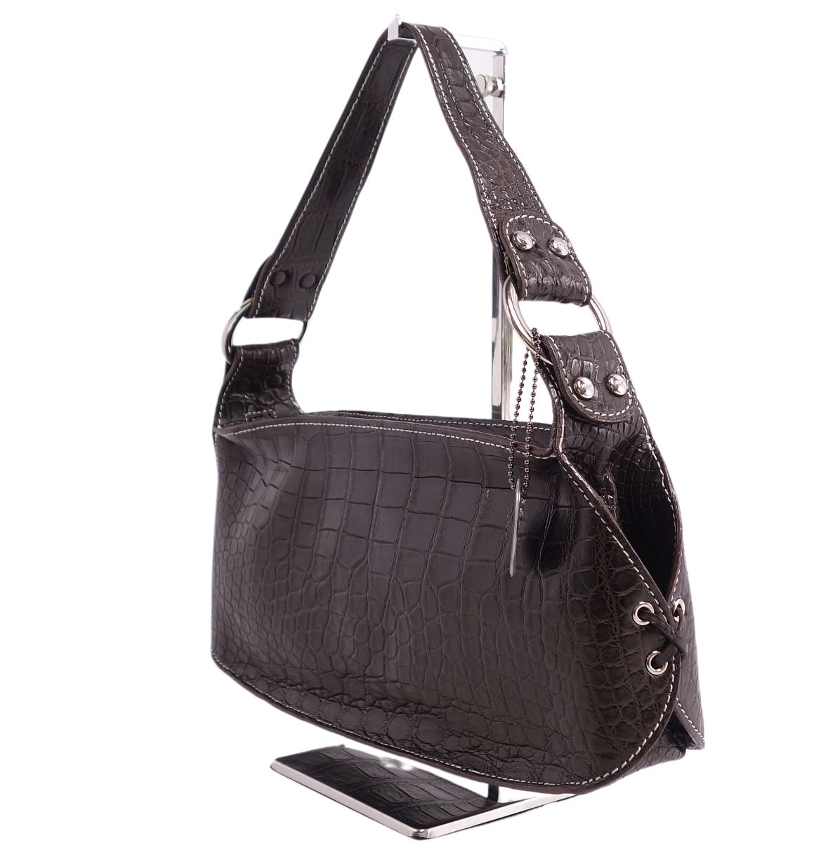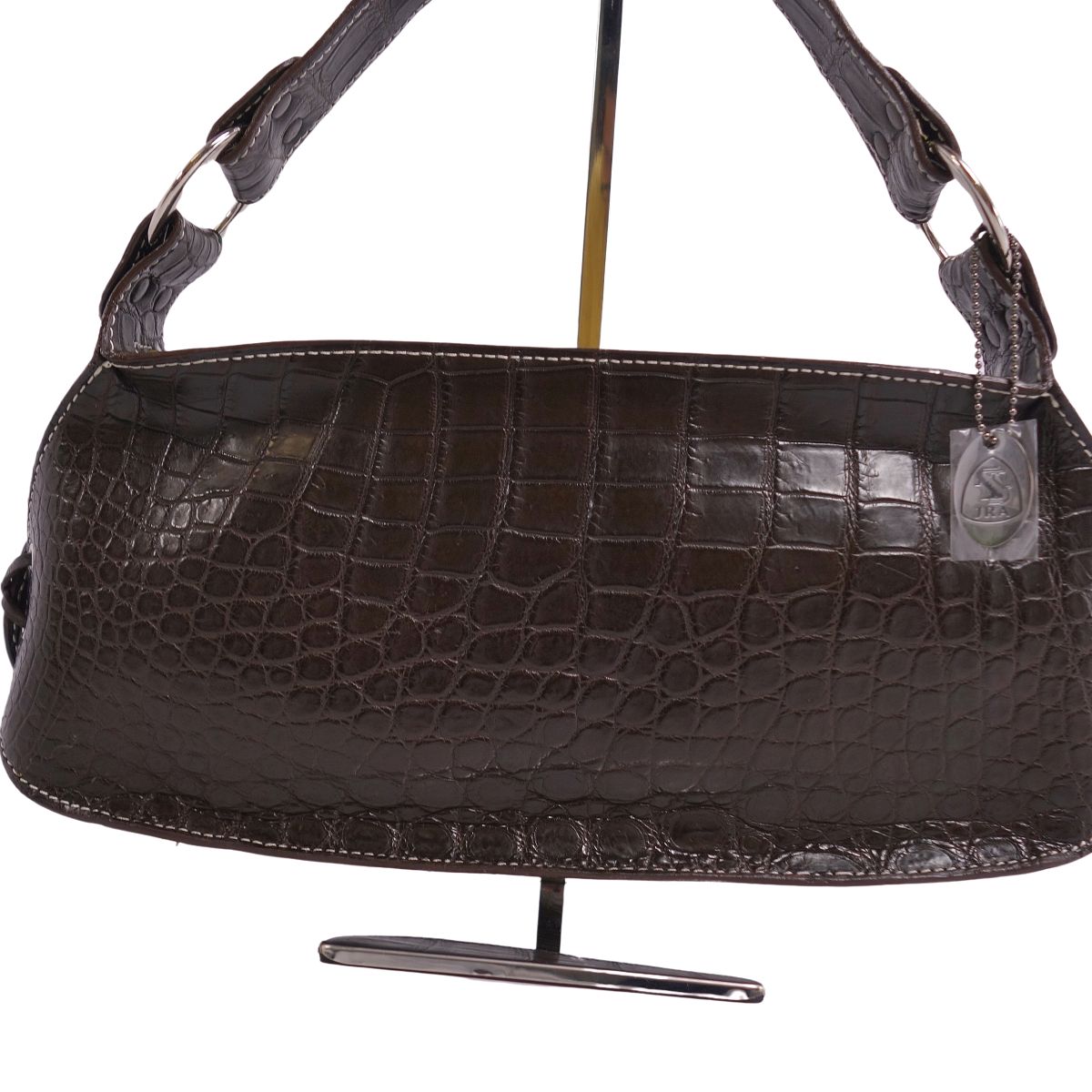 クロコダイル CROCODILE JRA バッグ ハンドバッグ マットクロコ ワニ革 カバン レディース ダークブラウン サイズ-