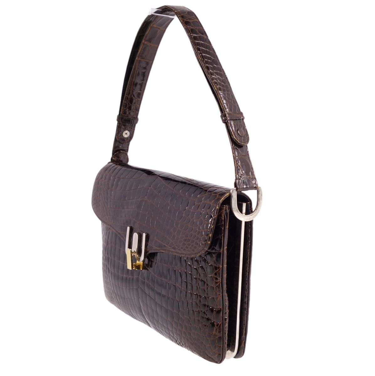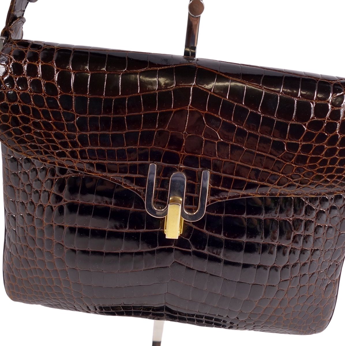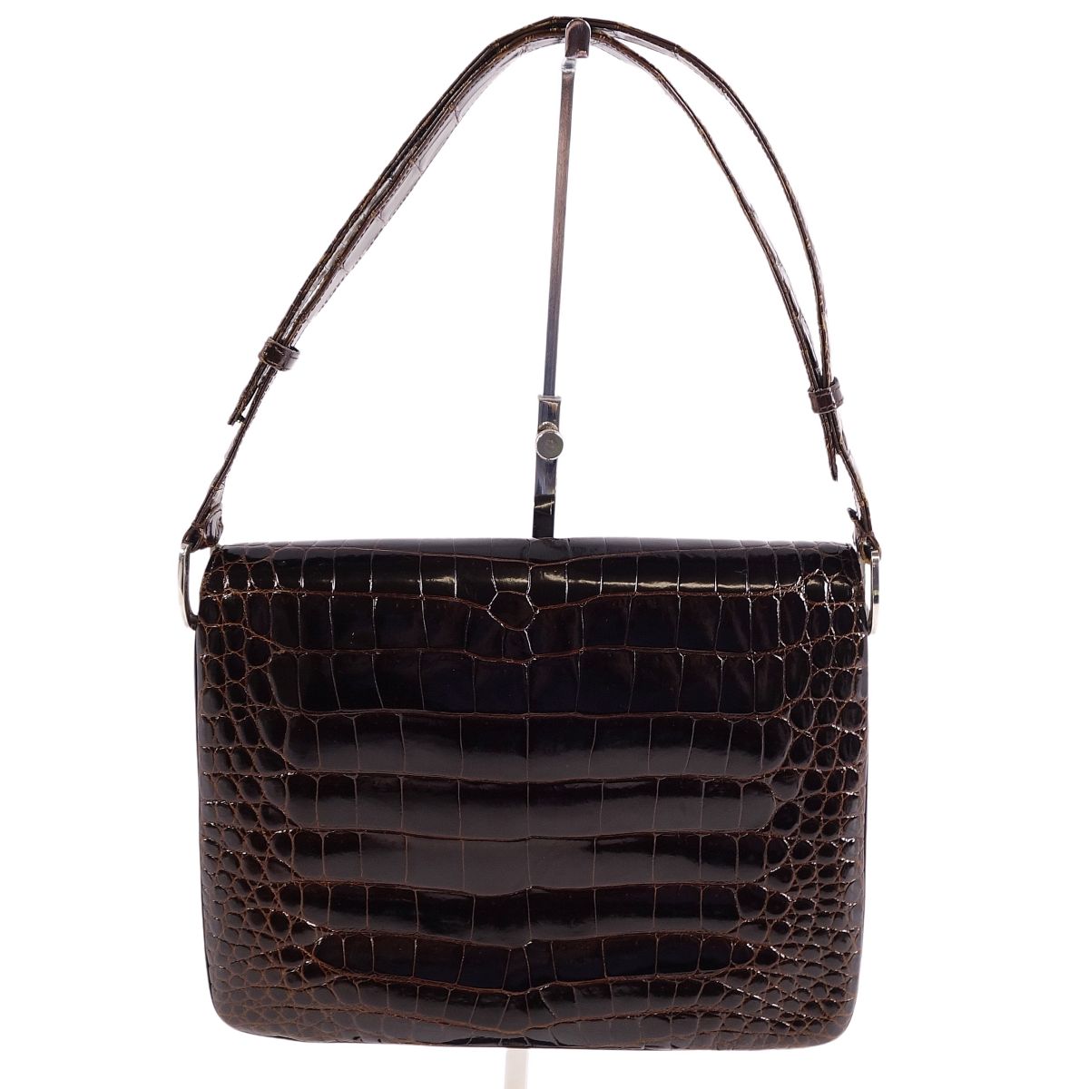 クロコダイル CROCODILE バッグ ハンドバッグ ショルダーバッグ シャイニークロコ ワニ革 カバン レディース ブラウン サイズ-