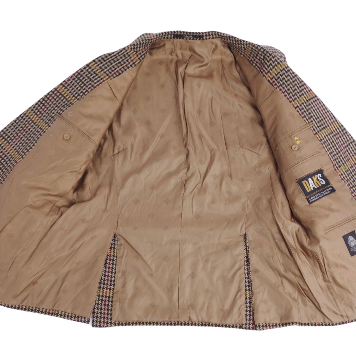 ダックス DAKS ジャケット テーラード ウール 千鳥格子 ツイード アウター メンズ ベージュ サイズ170-104-91(M相当)