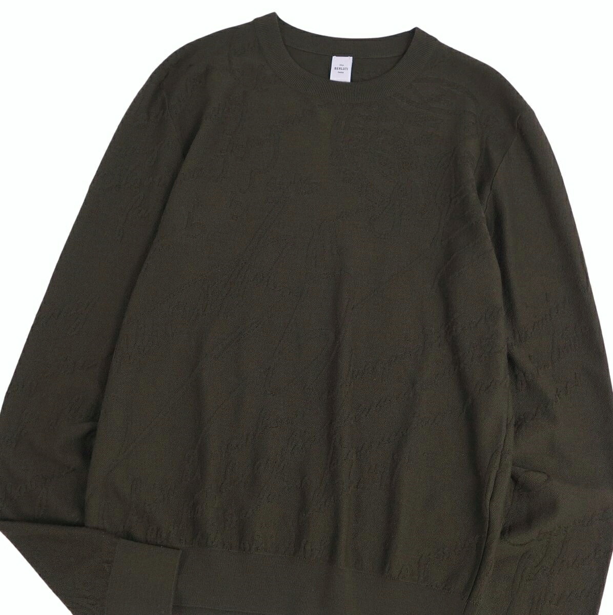 ベルルッティ Berluti ニット セーター ロングスリーブ クルーネック カリグラフィ ウール トップス メンズ カーキ サイズS