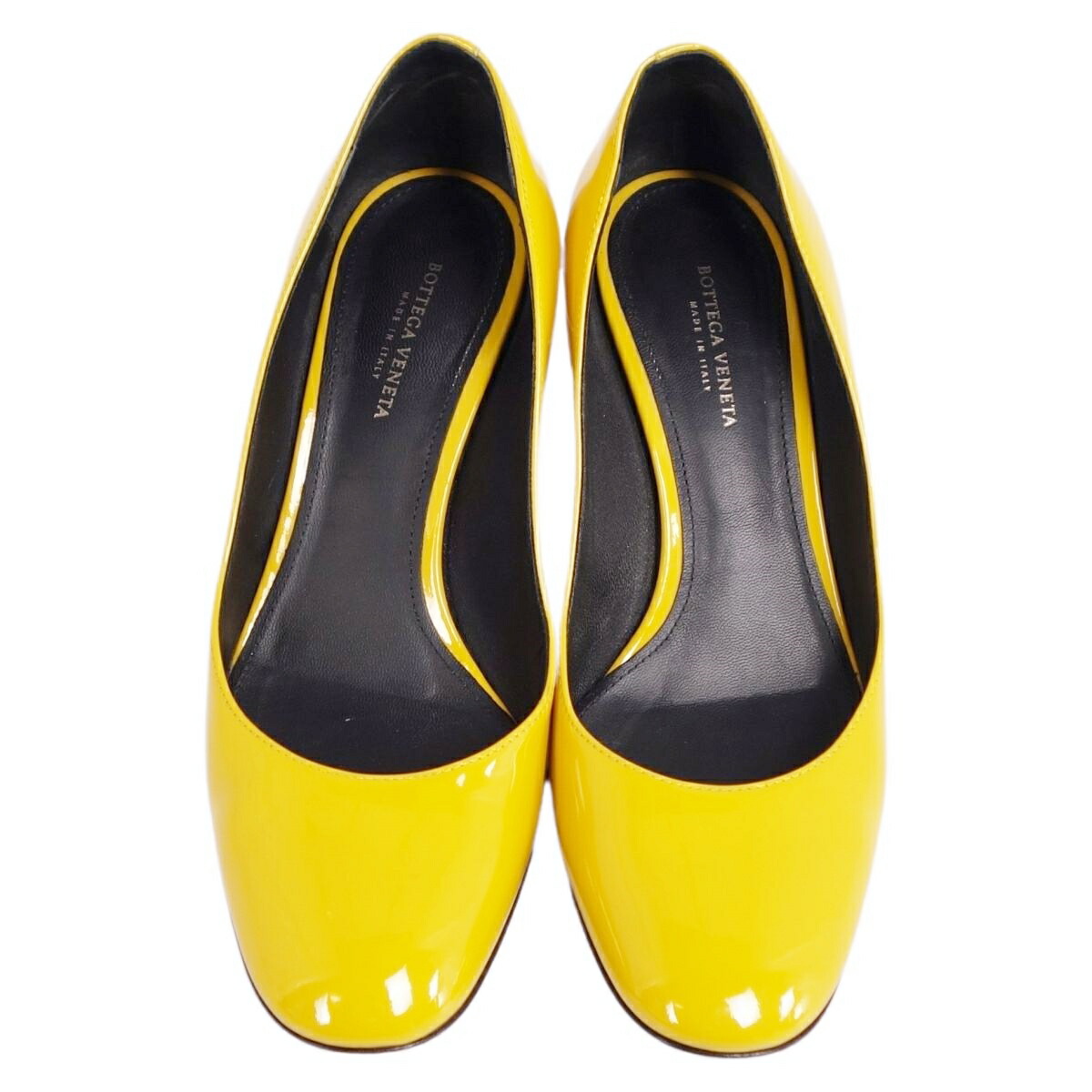 ボッテガヴェネタ BOTTEGA VENETA パンプス ヒール ラウンドトゥ バイカラー パテントレザー シューズ レディース イエロー/ブラック サイズ35(22cm相当)