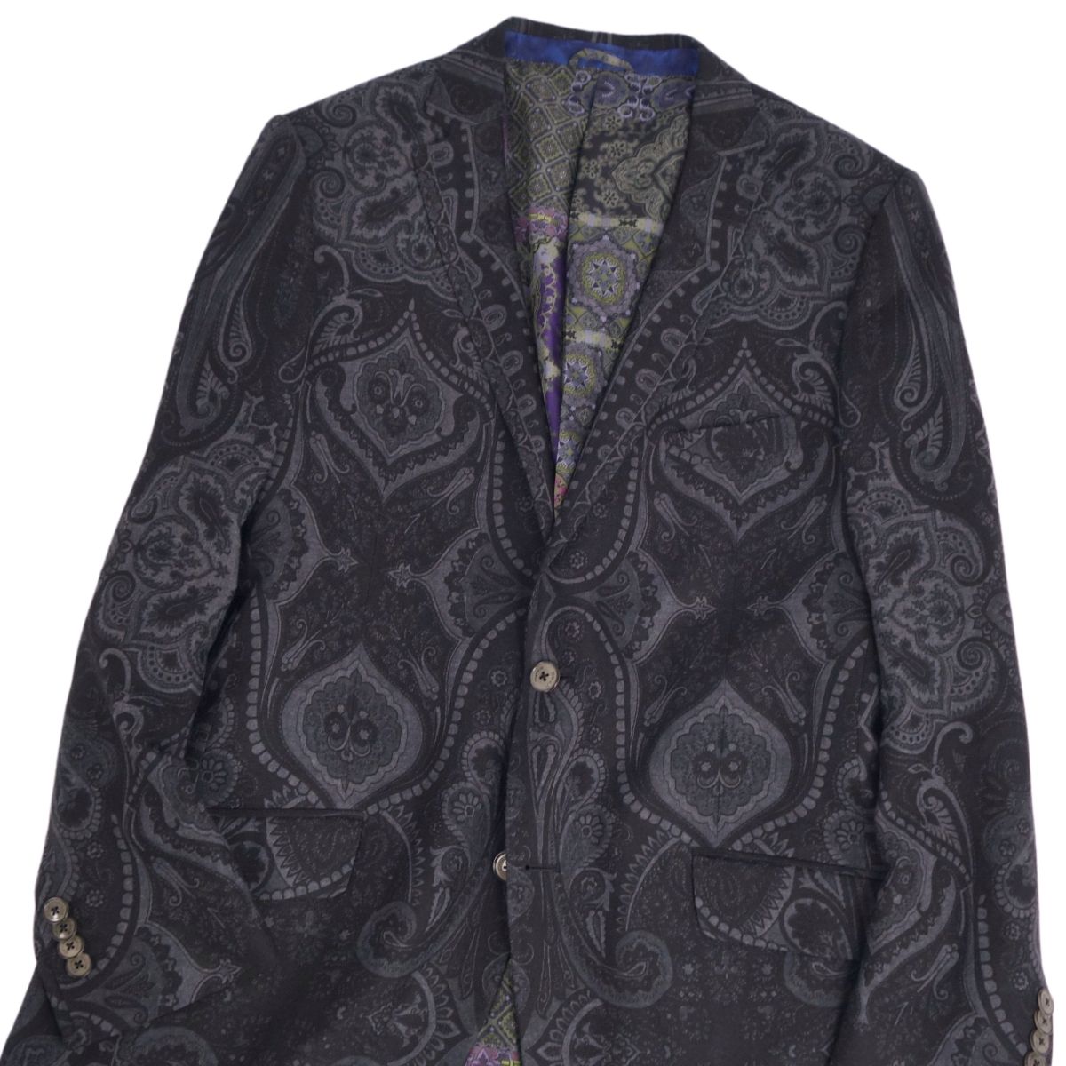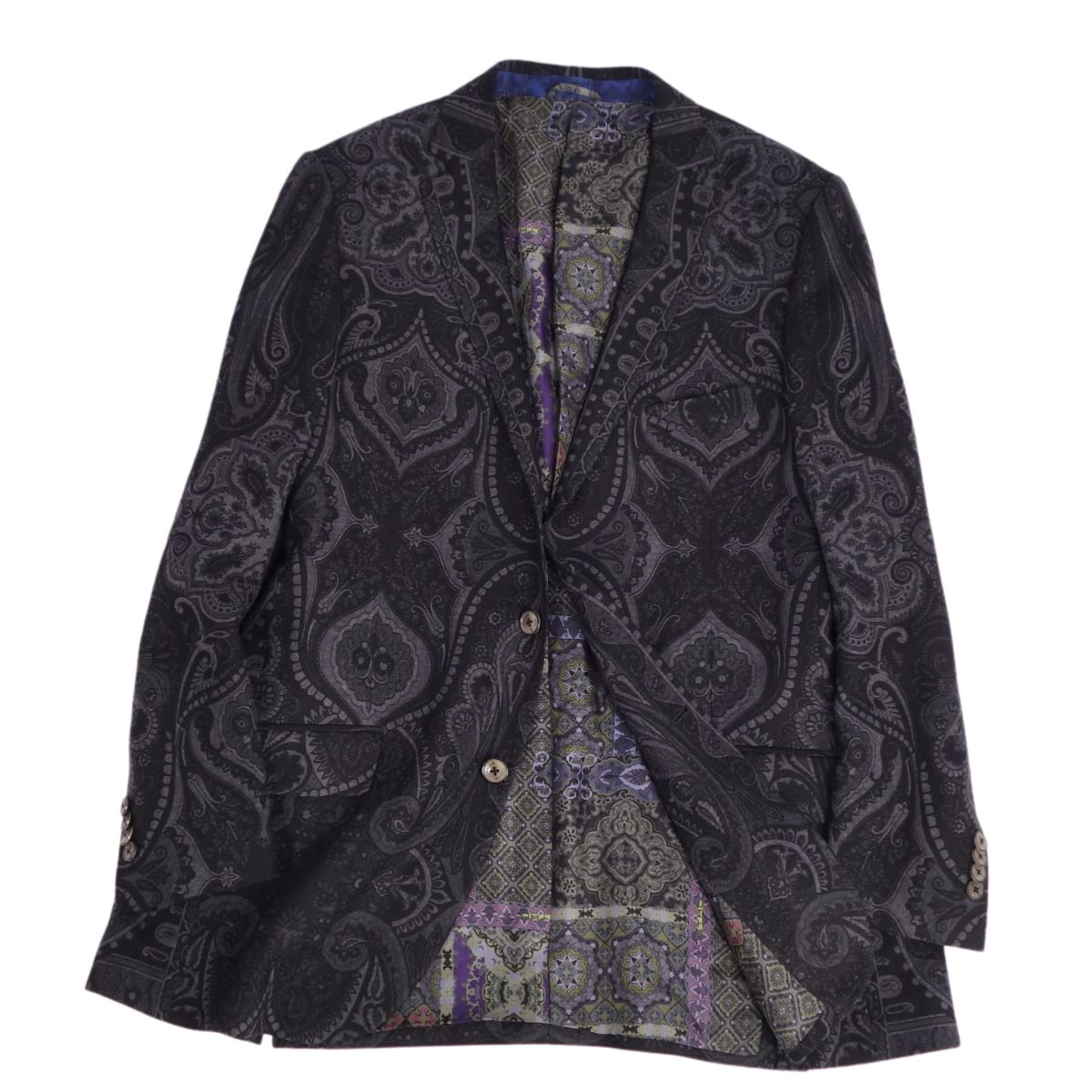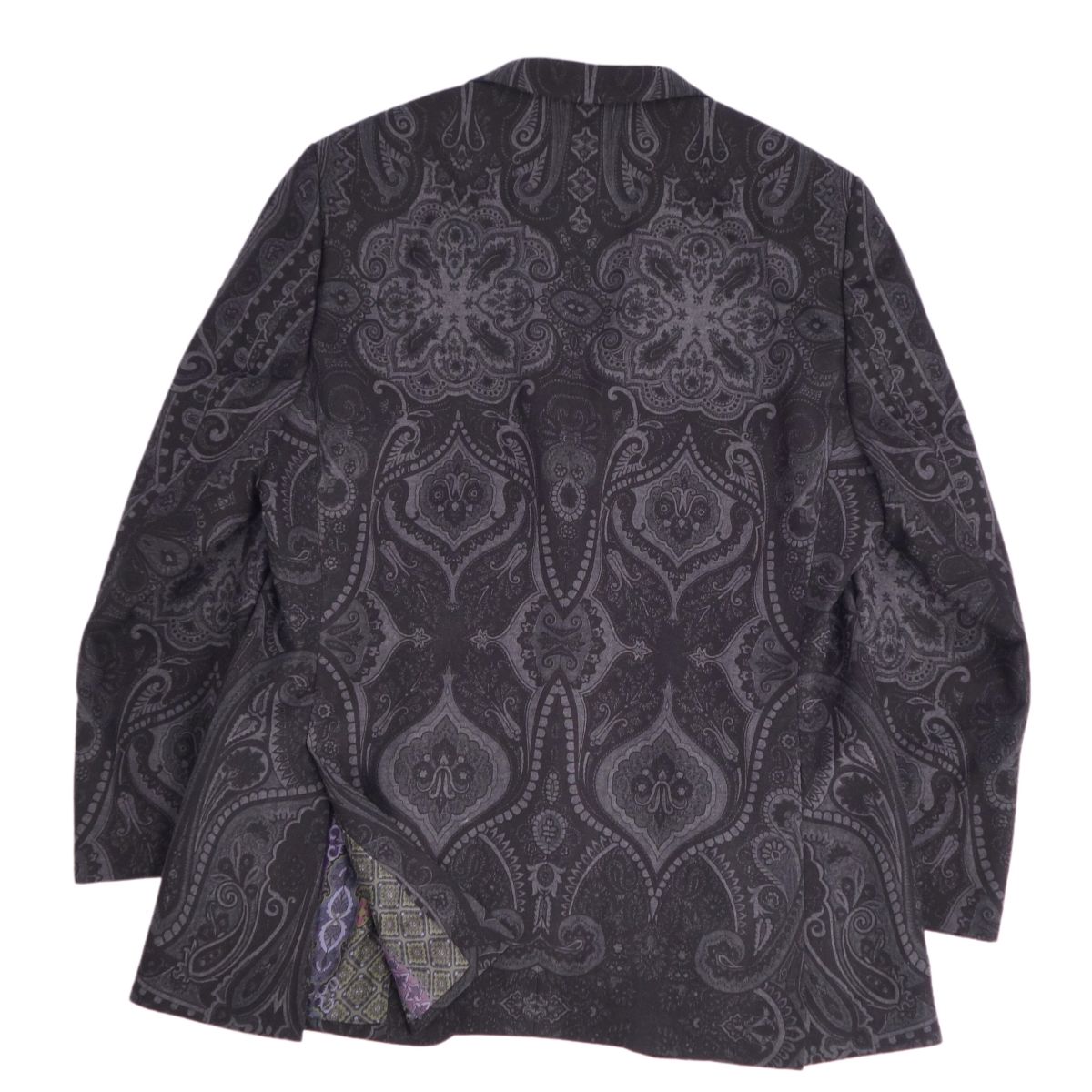 【極美品】エトロ ETRO ジャケット テーラードジャケット シングル ペイズリー柄 裏総柄 ウール アウター メンズ 56(XL相当) ブラック/グレー【中古】