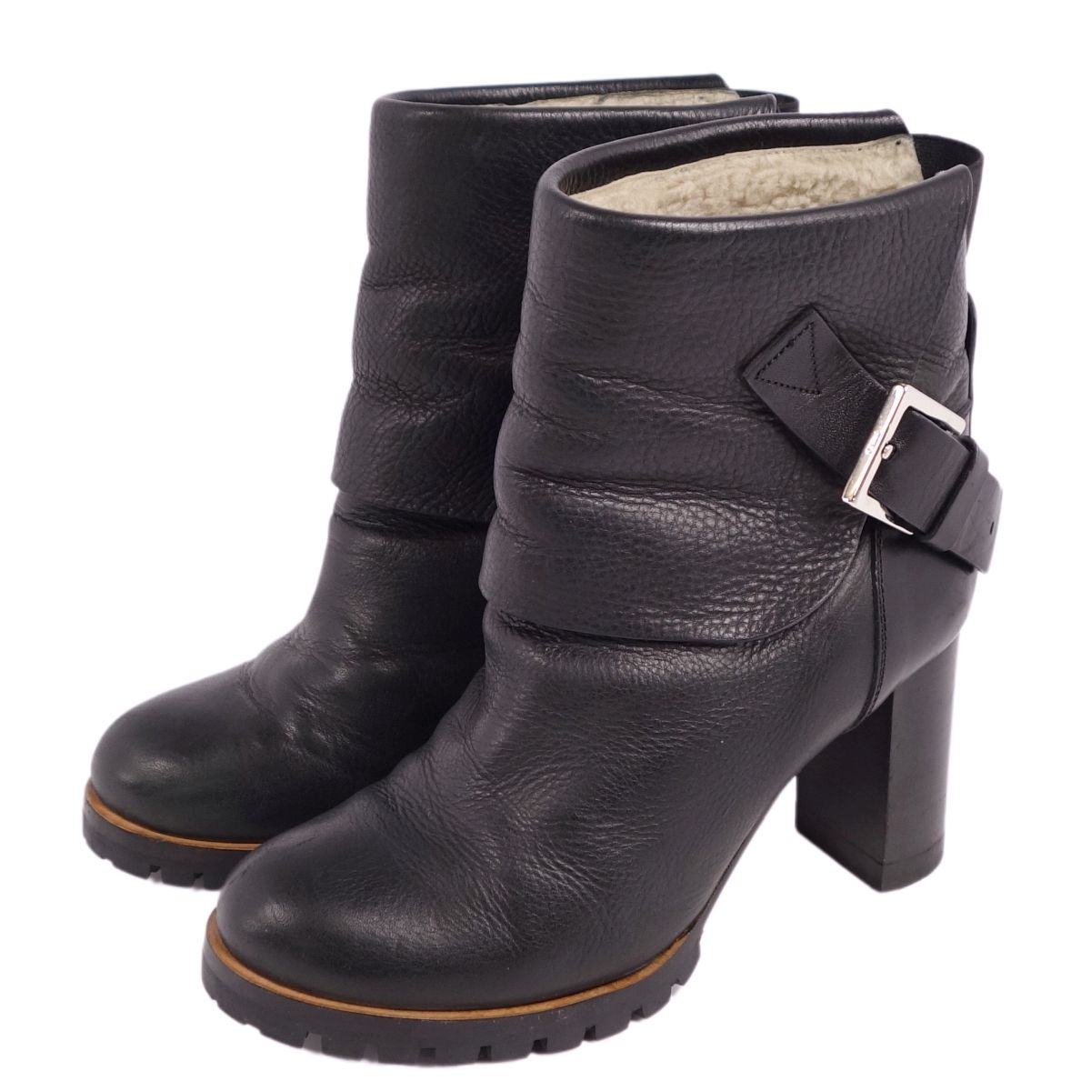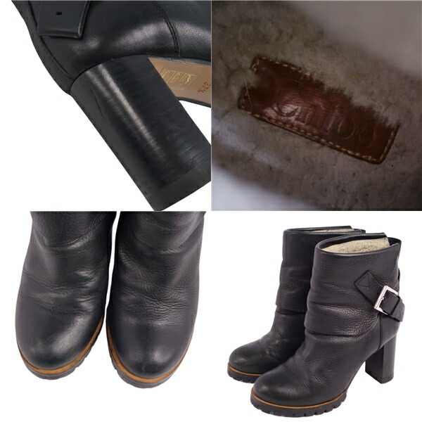 クロエ Chloe ブーツ ショートブーツ ヒール 内ボア カーフレザー シューズ レディース ブラック サイズ37.5(24.5cm相当)