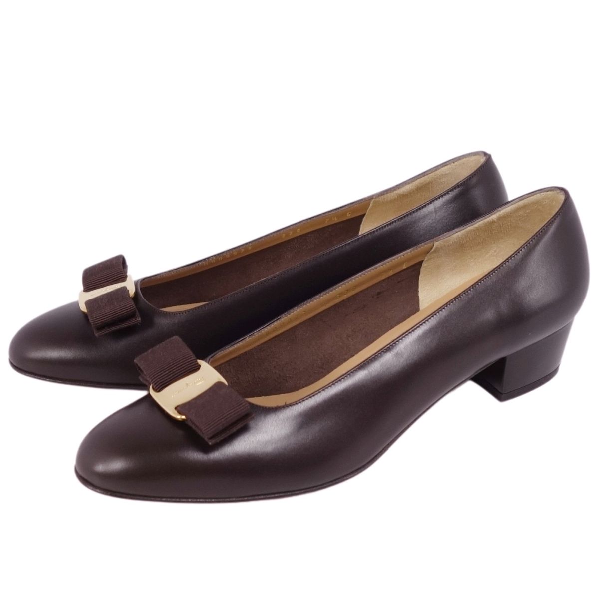 サルヴァトーレ フェラガモ Salvatore Ferragamo パンプス ヒール ヴァラ カーフレザー シューズ レディース ブラウン サイズ7.5C(25cm相当)