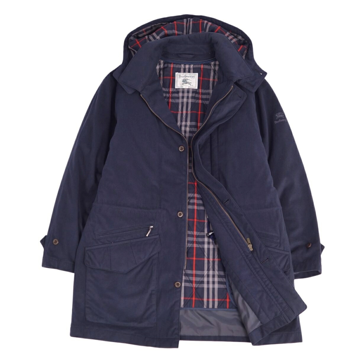 Vintage バーバリー Burberrys コート フーディー 中綿ライナー付き アウター メンズ ネイビー サイズLA