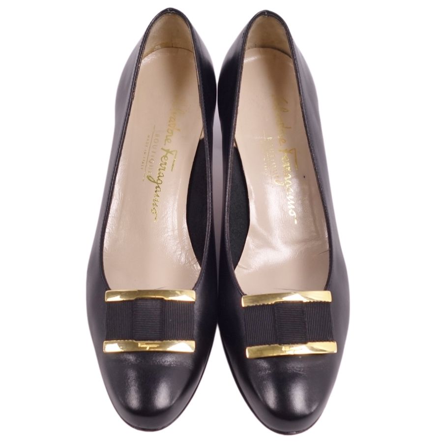 サルヴァトーレ フェラガモ Salvatore Ferragamo パンプス リボン カーフレザー ヒール シューズ 靴 レディース ブラック サイズ6.5C