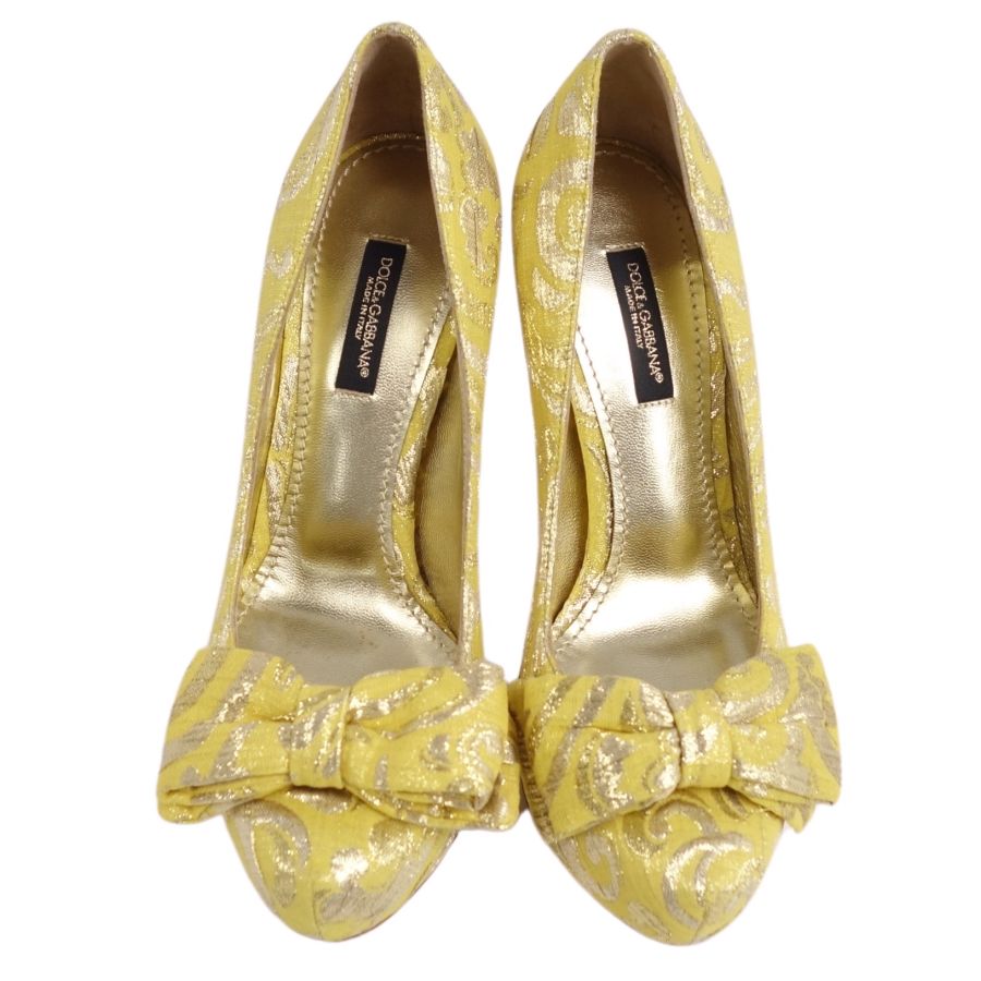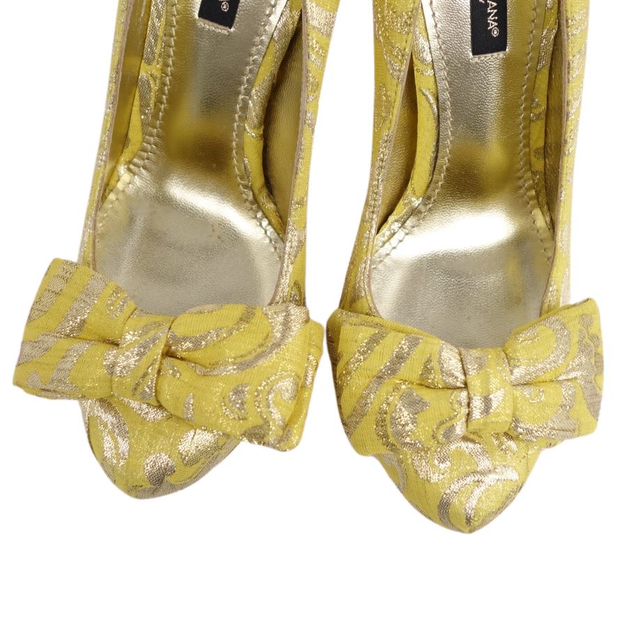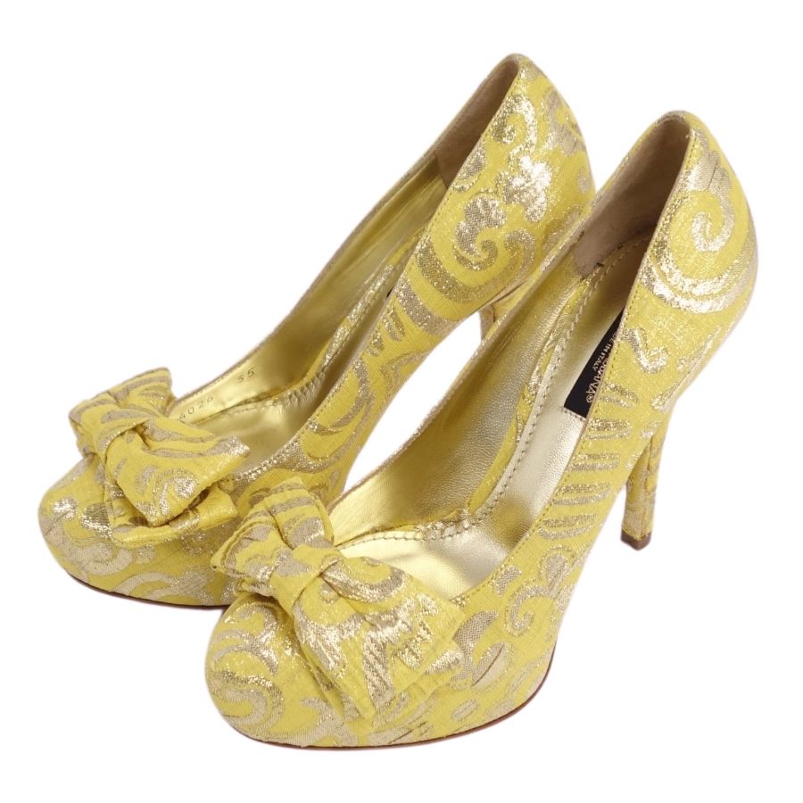商品名 【新品同様】ドルチェ&ガッバーナ DOLCE&GABBANA パンプス リボン 刺繍 総柄 ヒール シューズ 靴 レディース 35(22cm相当) イエロー/ゴールド【中古】