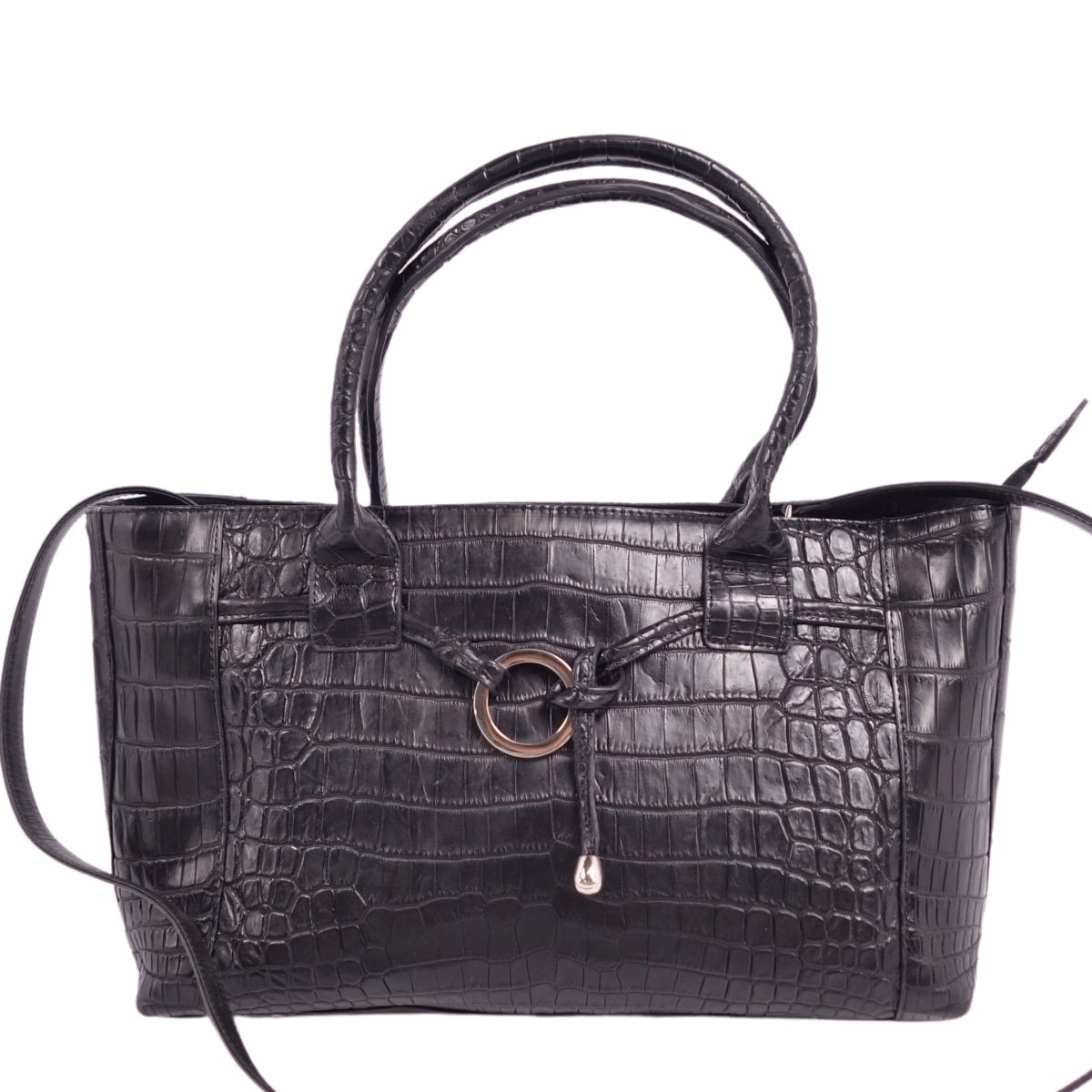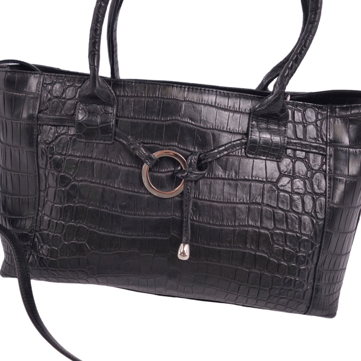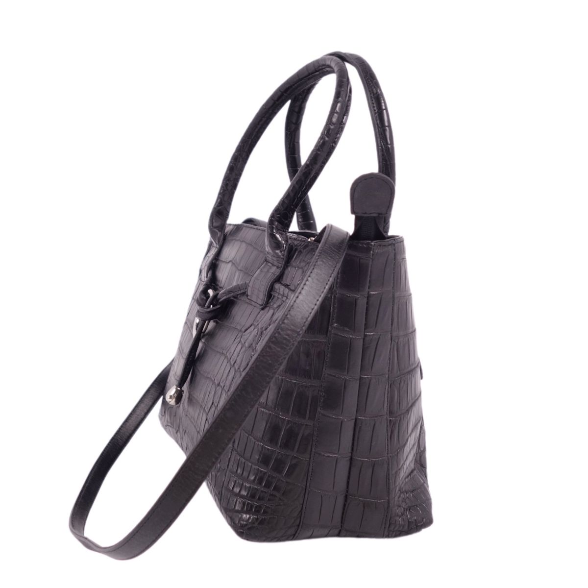 商品名 【美品】クロコダイル CROCODILE バッグ 2way ハンドバッグ ショルダーバッグ マットクロコ ワニ革 カバン レディース ブラック【中古】