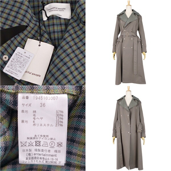ビューティフルピープル beautiful people コート トレンチコート コットン ウール モヘア アウター レディース グレー/グリーン サイズ36(S相当)