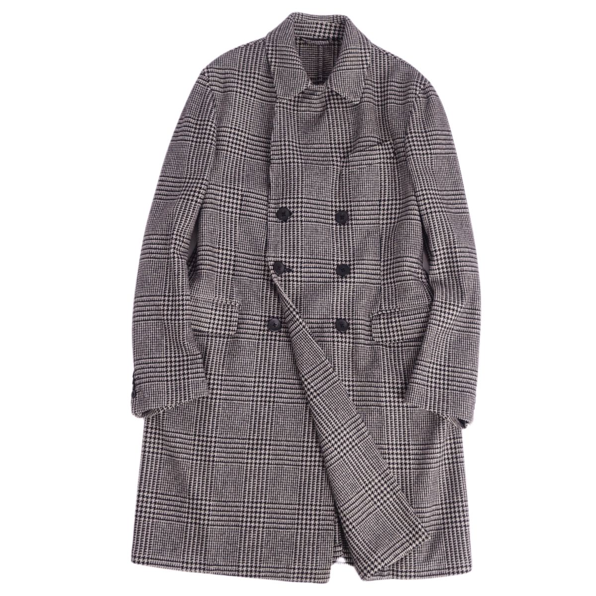 商品名 ベルベスト Belvest コート チェスターコート ダブルブレスト チェック柄 ウール アウター メンズ 50(M相当) ブラック/ホワイト【中古】