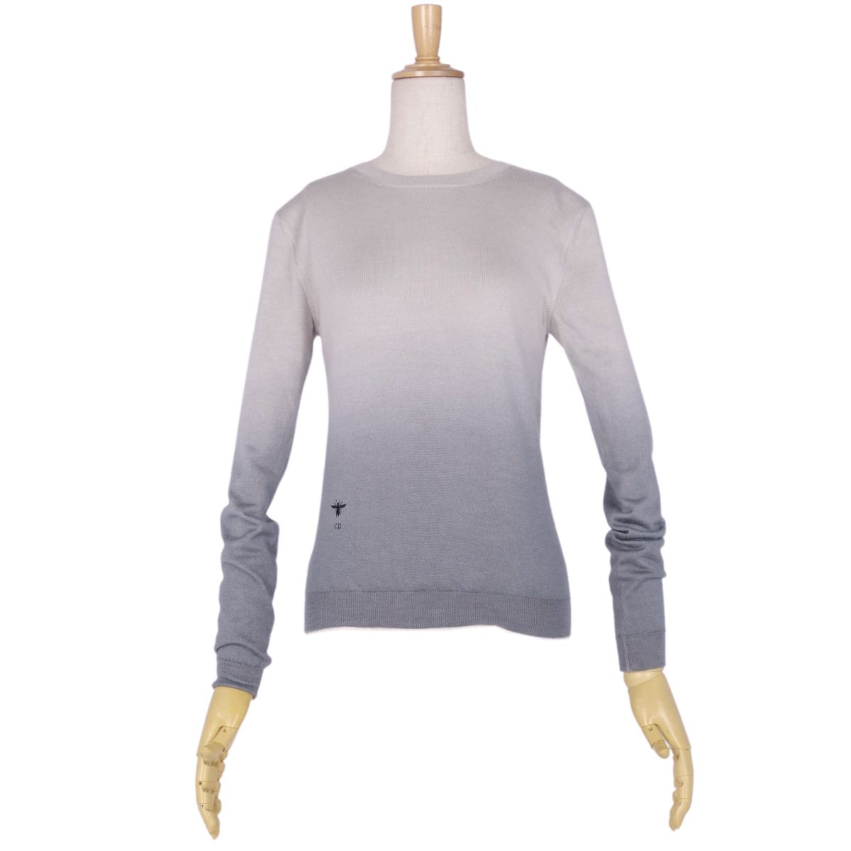 クリスチャンディオール Christian Dior ニット セーター ロングスリーブ 長袖 Bee刺繍 カシミヤ シルク トップス レディース グレー サイズF36 USA4 I40(S相当)