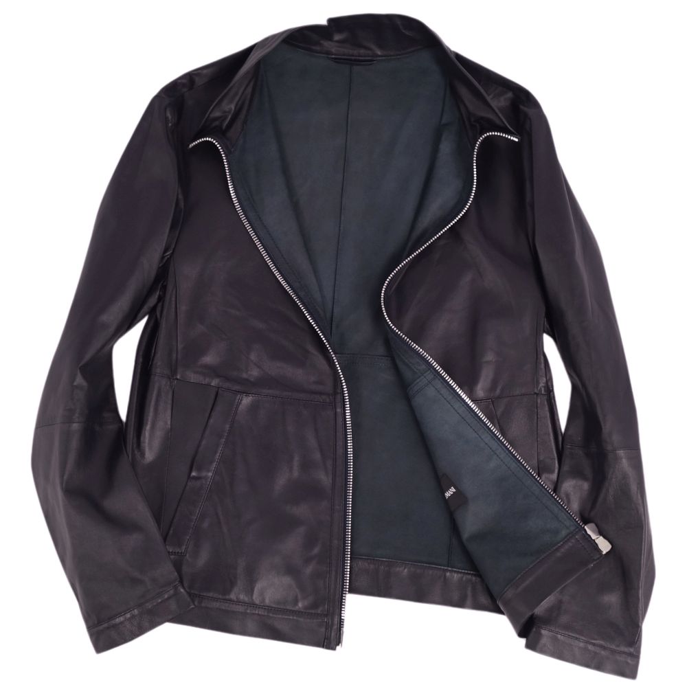 エンポリオアルマーニ EMPORIO ARMANI ジャケット レザージャケット ラムレザー ジップアップ アウター メンズ ブラック サイズ56(XXL)