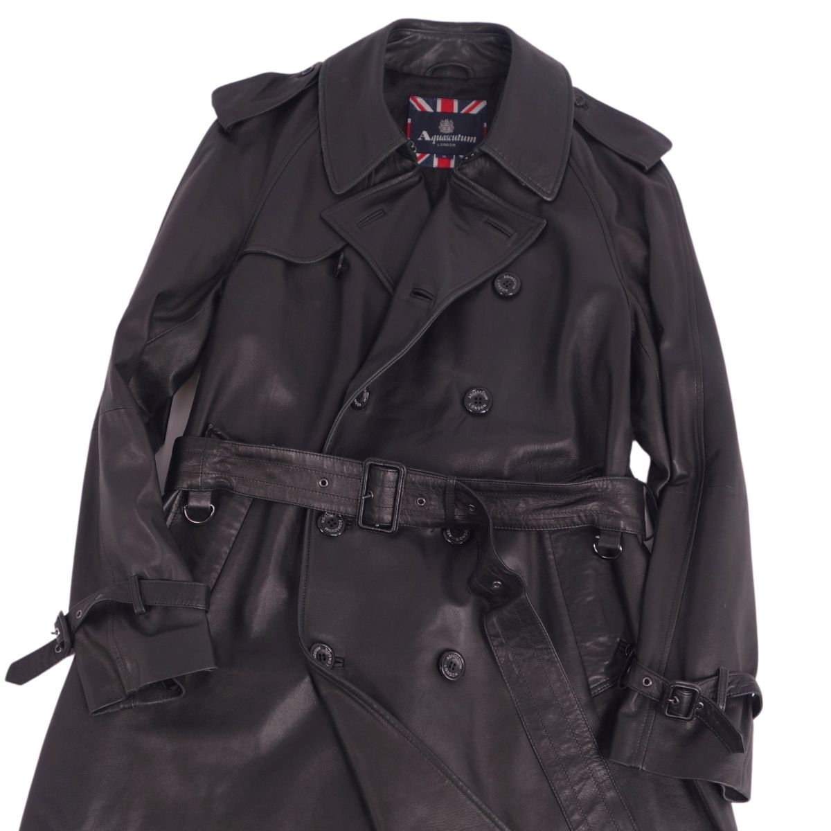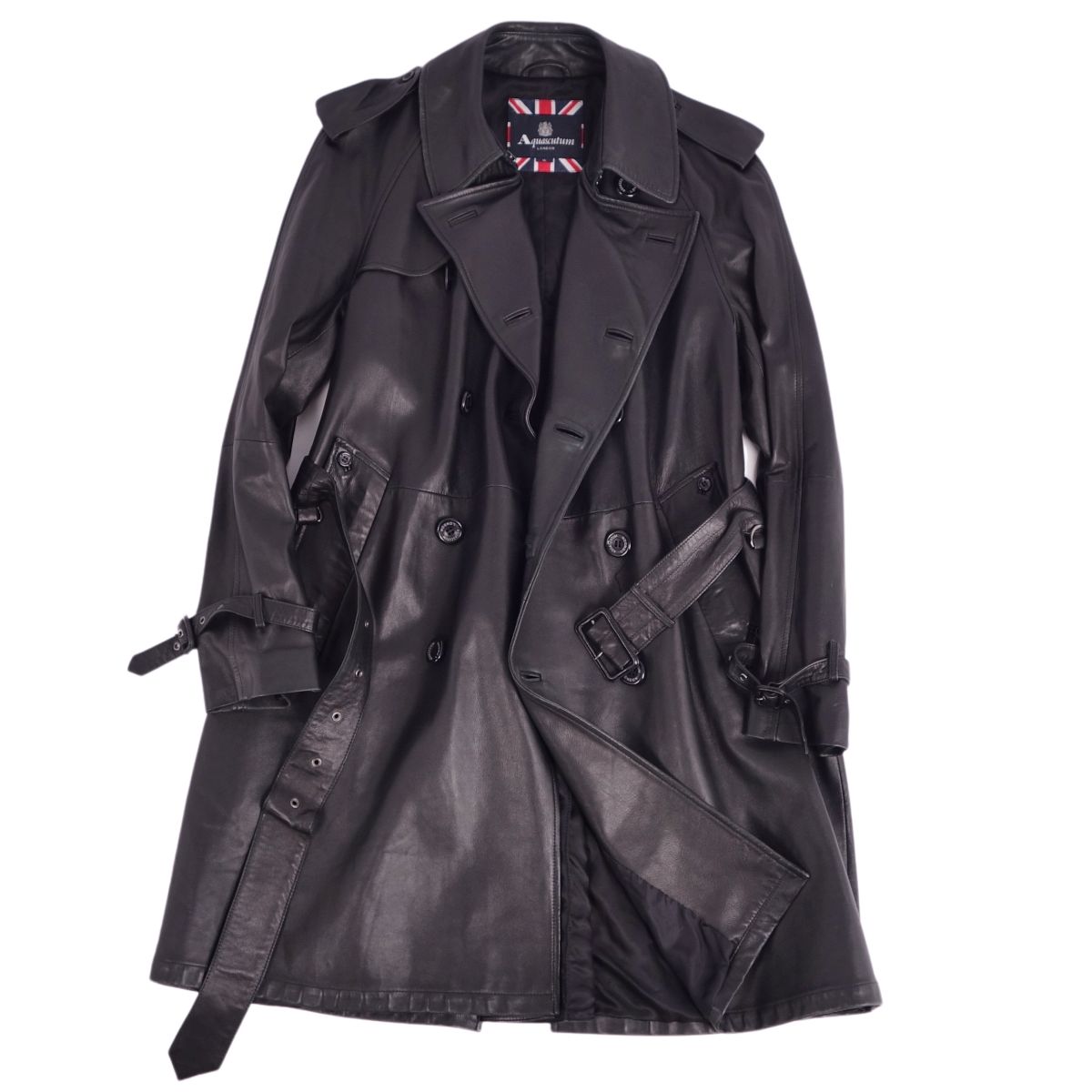 アクアスキュータム Aquascutum LONDON コート トレンチコート レザーコート シープスキン アウター メンズ ブラック サイズLL
