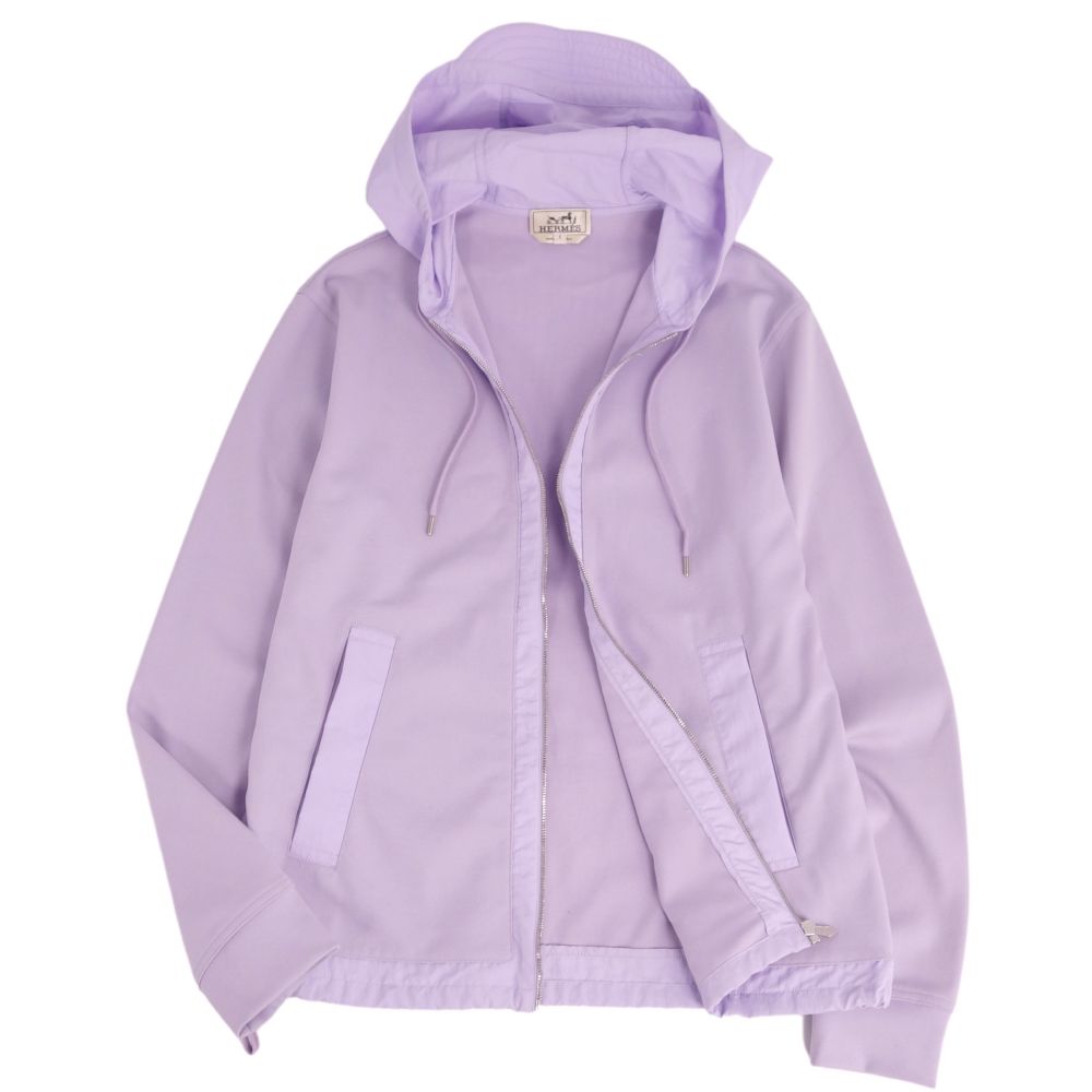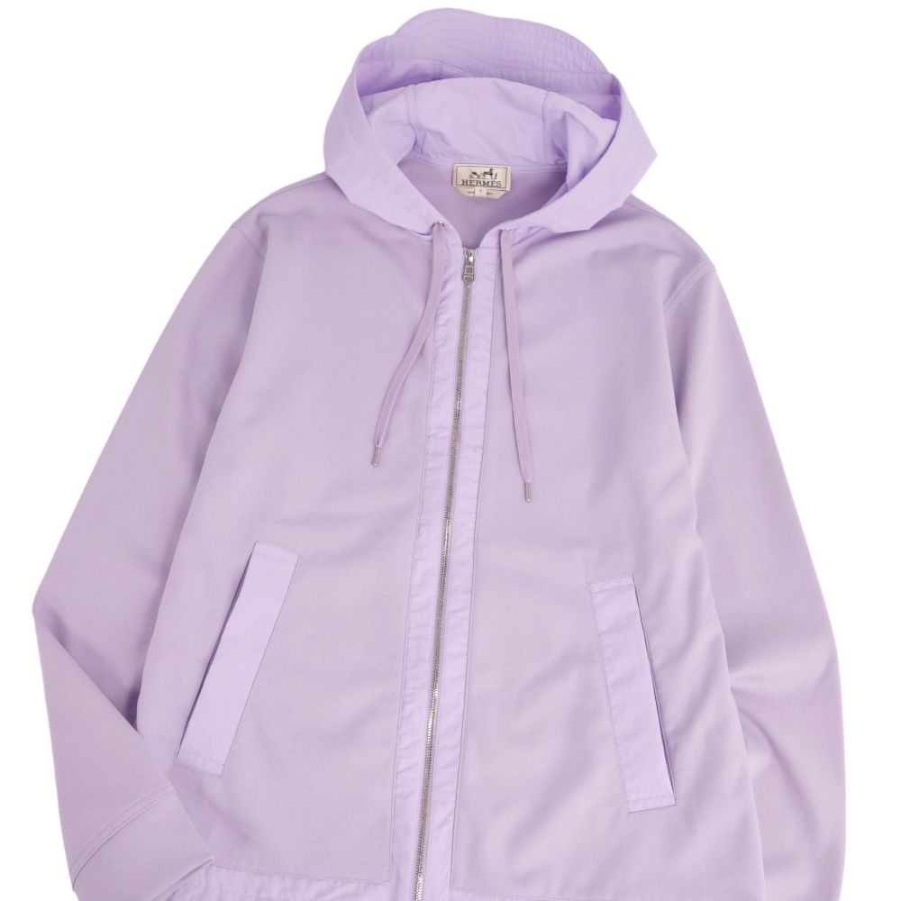 エルメス HERMES パーカー フーディー ジップアップ ナイロン切り替え スウェット トップス メンズ イタリア製 ライトパープル サイズS