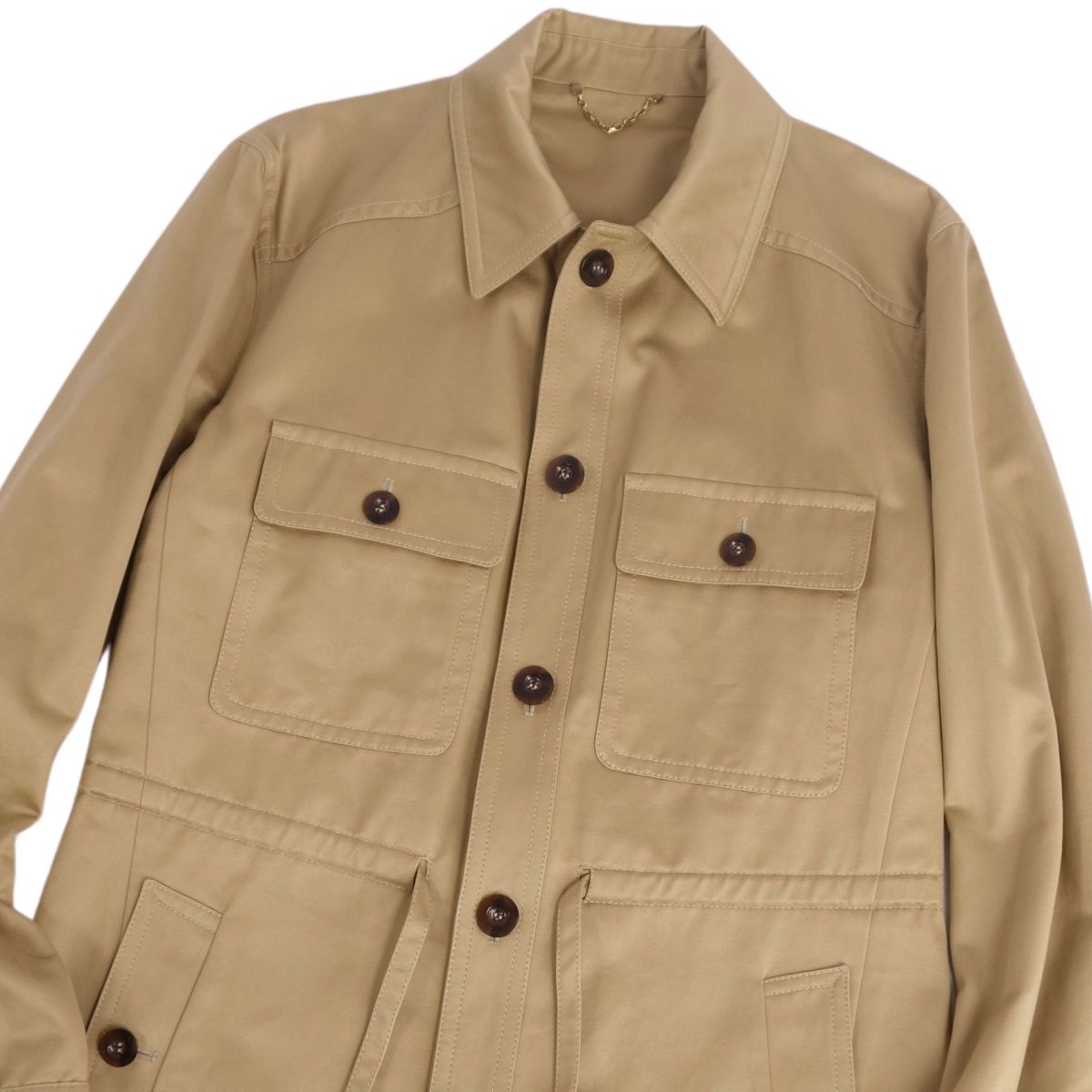 ルイヴィトン LOUIS VUITTON ジャケット サファリジャケット ドローコード 無地 コットン アウター メンズ カーキベージュ サイズ52(L相当)