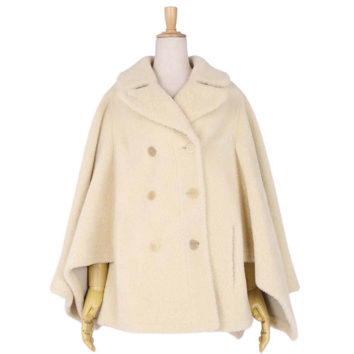 ロエベ LOEWE コート ムートンコート ケープ ショート丈 アナグラム シープスキン アウター レディース アイボリー サイズ34(XS相当)