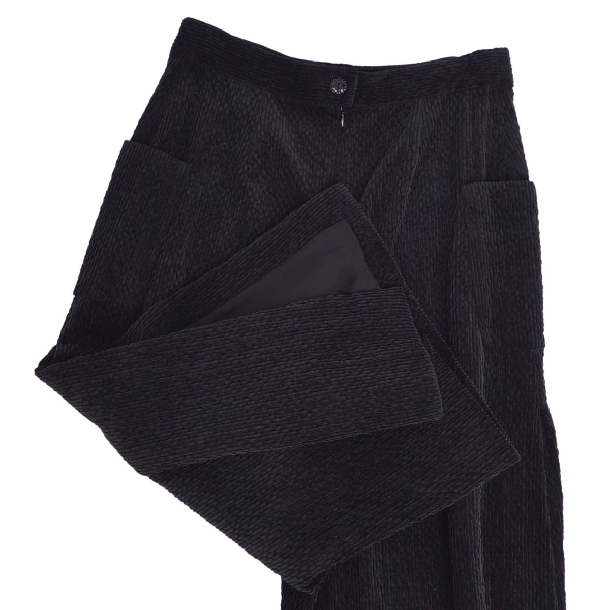 ・肌触り良く光沢感のあるベルベット素材を使用した、CHANELのワイドパンツです♪