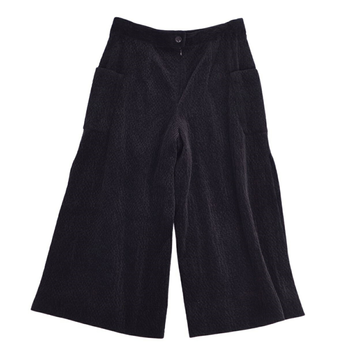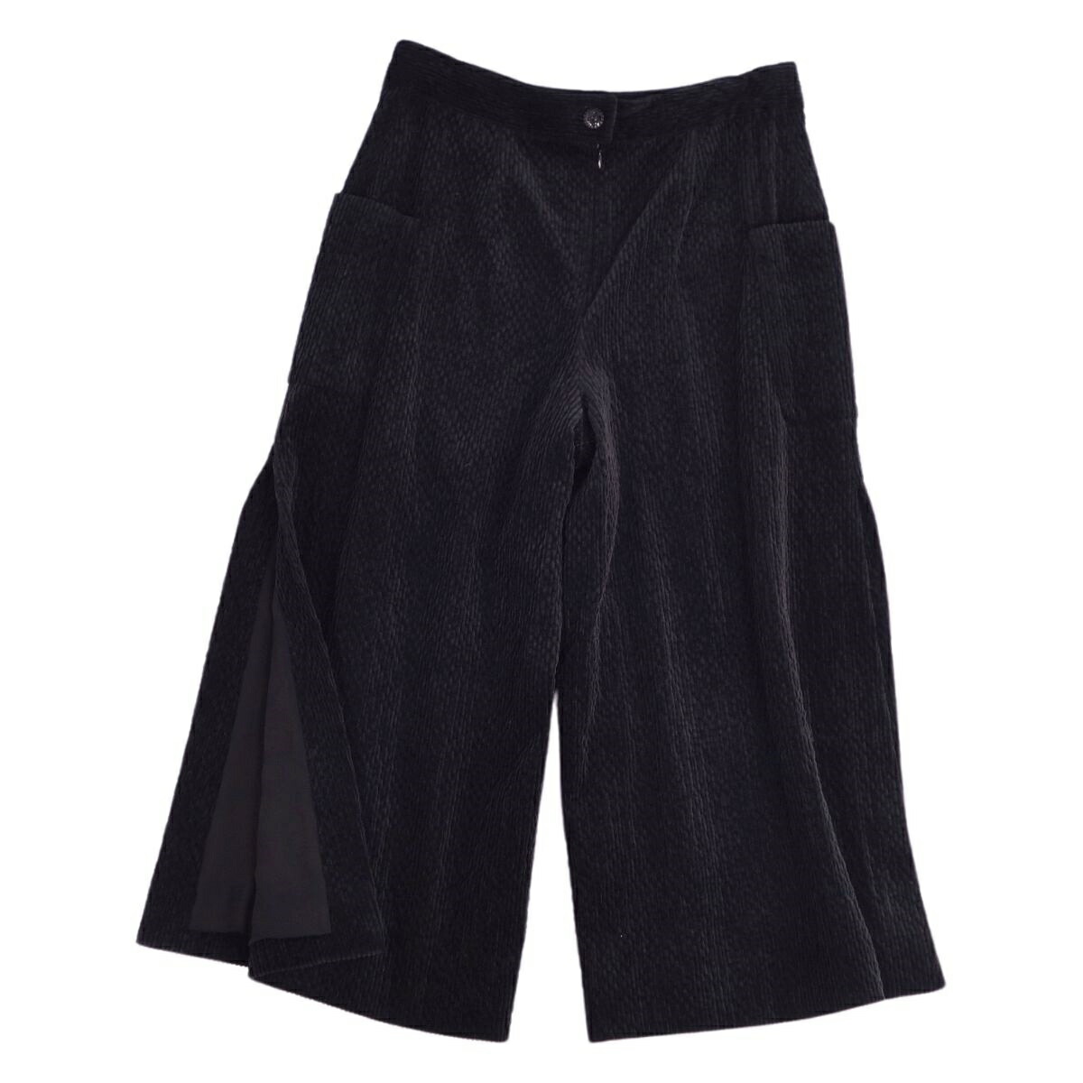 シャネル CHANEL パンツ 22AW ロングパンツ ワイドパンツ ベルベット スリット ココマーク ボトムス レディース P73326 ブラック サイズ42(L相当)