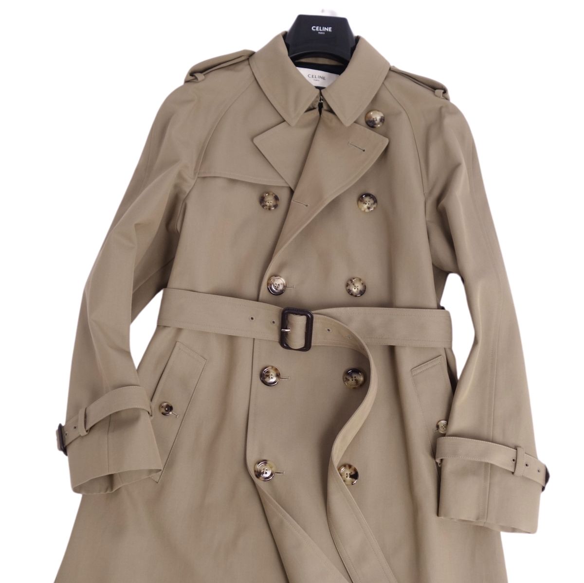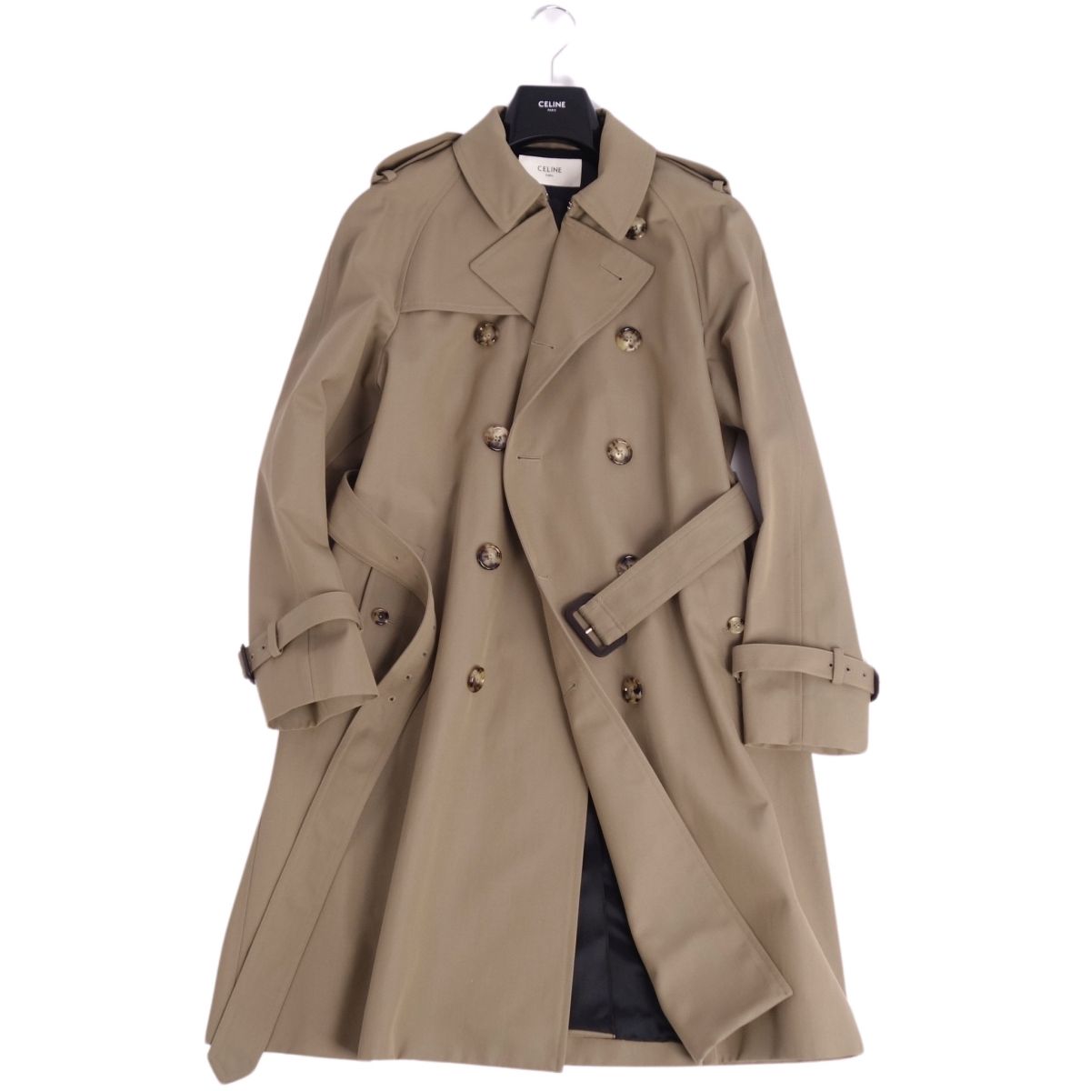セリーヌ CELINE コート クラシック トレンチコート ベルト付き 無地 ウール コットン アウター メンズ カーキベージュ サイズ50(M相当)