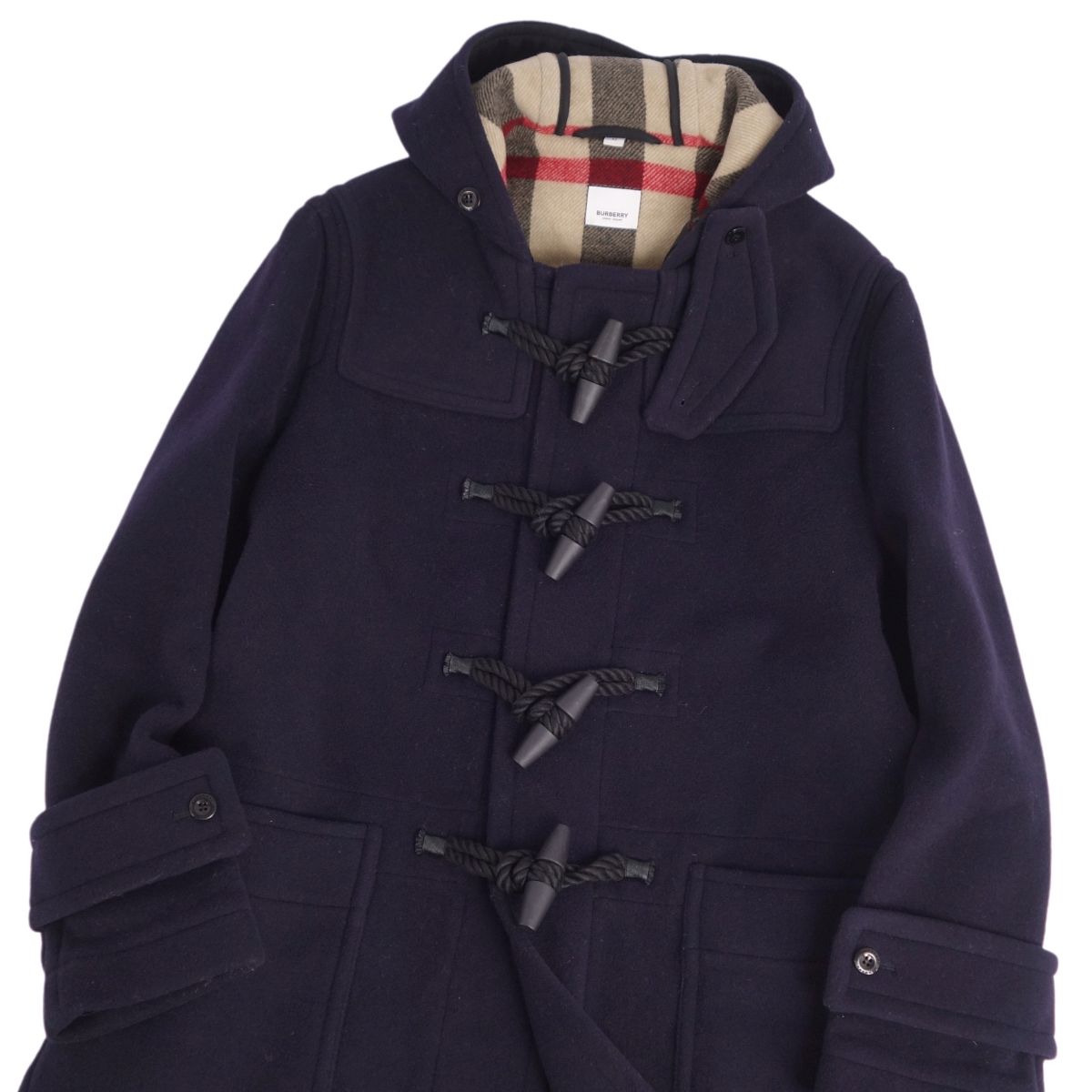バーバリー BURBERRY コート ダッフルコート フーディー 裏チェック ウール アウター メンズ ネイビー サイズ52(L相当)