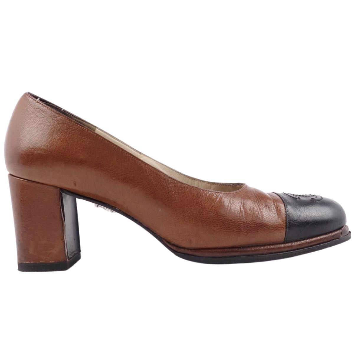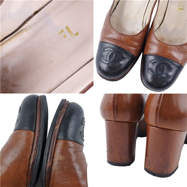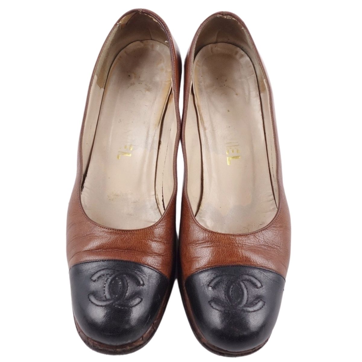 Vintage シャネル CHANEL シューズ パンプス ココマーク バイカラー キャップトゥ レディース 靴 フランス製 ブラウン/ブラック サイズ37