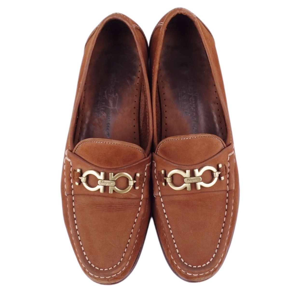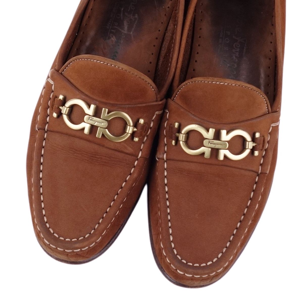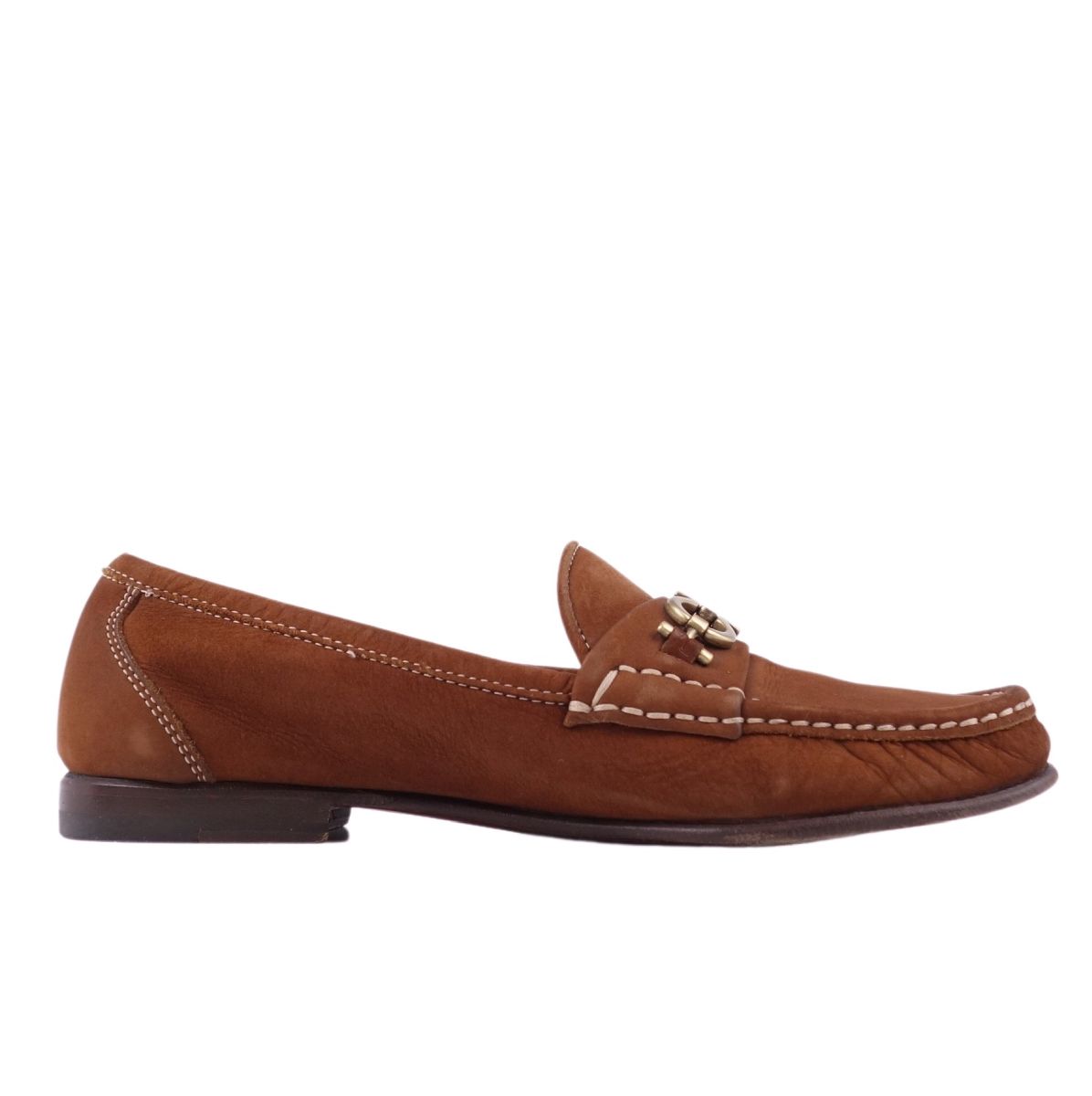 サルヴァトーレ フェラガモ Salvatore Ferragamo ローファー ガンチーニ ヌバック レザー レディース シューズ イタリア製 ブラウン サイズ6B(23.5cm相当)