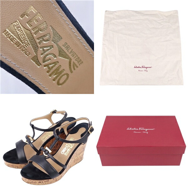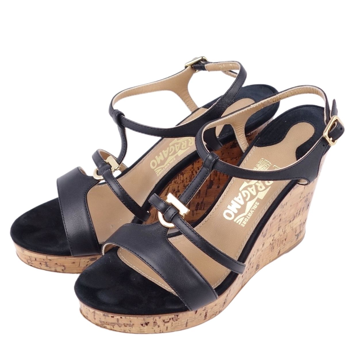 商品名 【ポイント10倍】サルヴァトーレ フェラガモ Salvatore Ferragamo サンダル ガンチーニ カーフレザー コルクソール ウエッジソール レディース シューズ イタリア製 5.5C(23cm相当) ブラック 黒【中古】