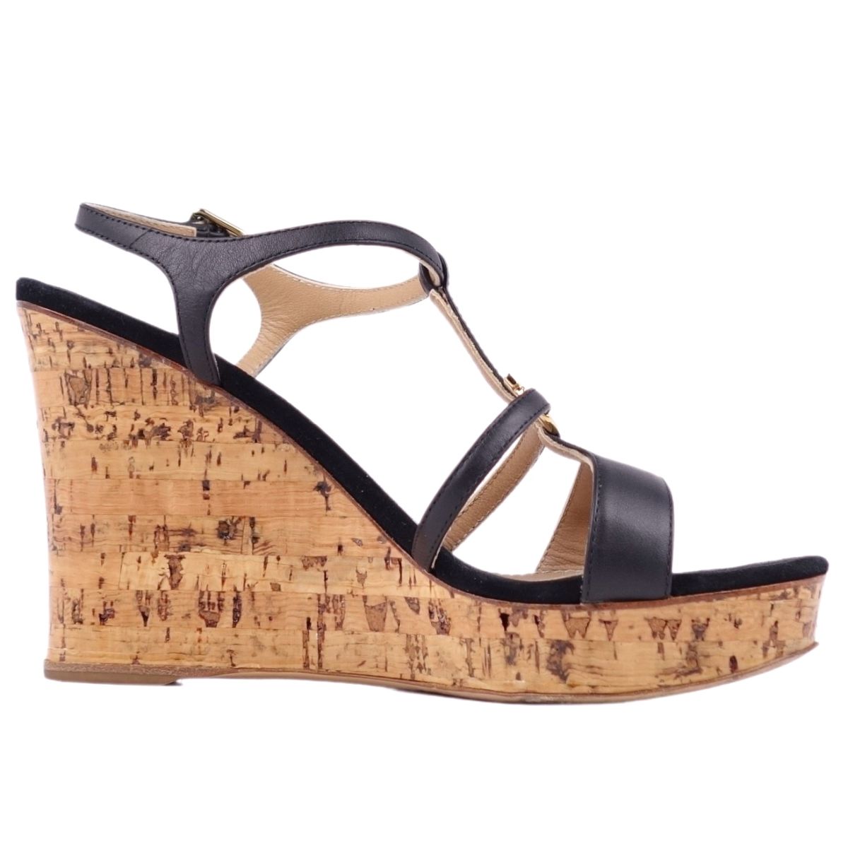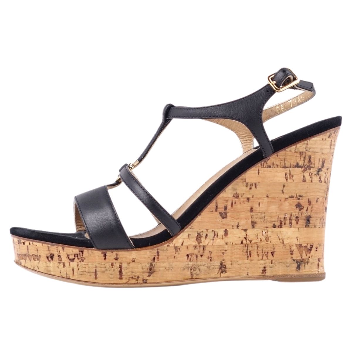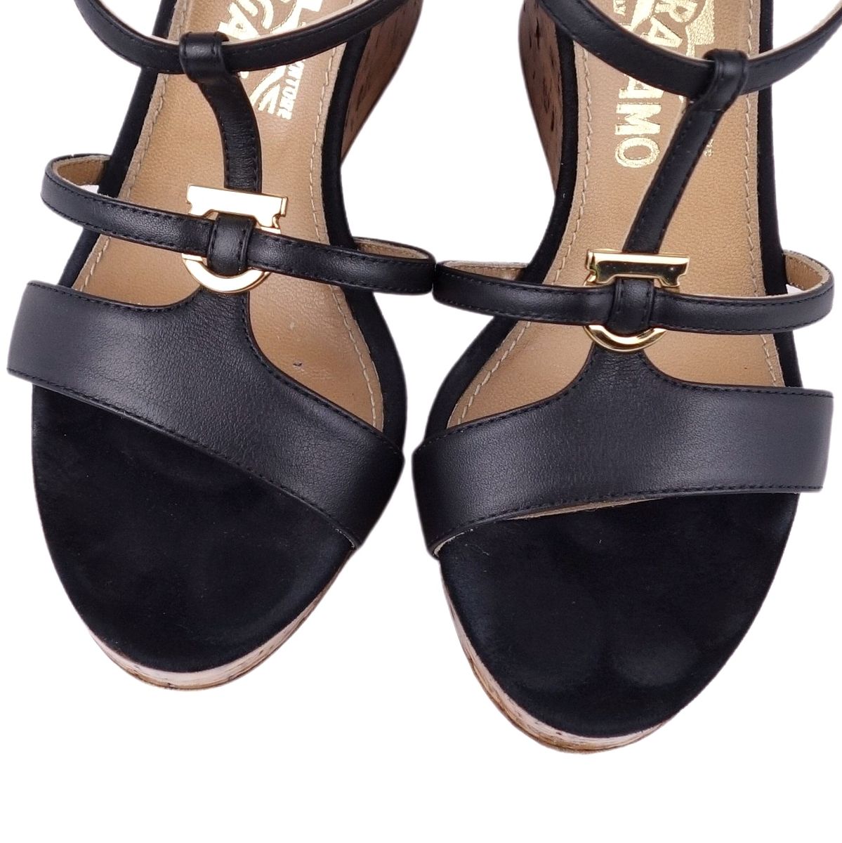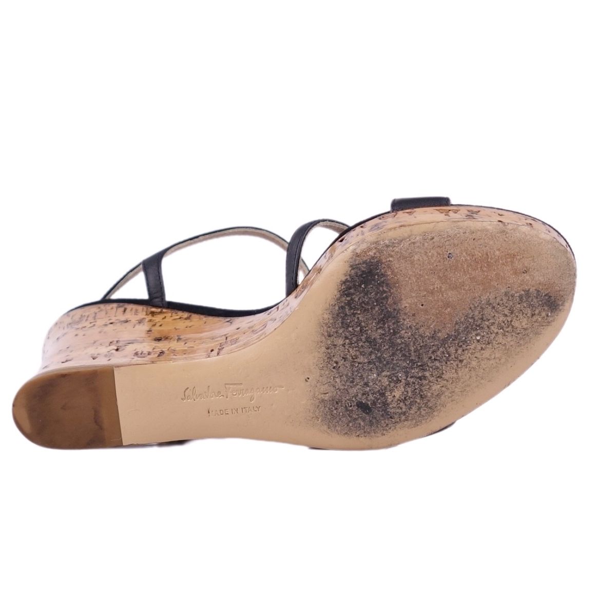 サルヴァトーレ フェラガモ Salvatore Ferragamo サンダル ガンチーニ カーフレザー コルクソール ウエッジソール レディース シューズ イタリア製 ブラック 黒 サイズ5.5C(23cm相当)