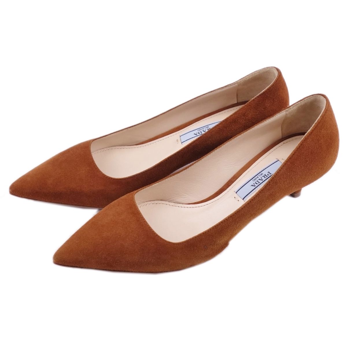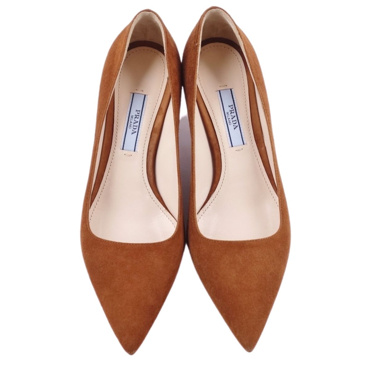 プラダ PRADA シューズ パンプス スウェード レディース ヒール 靴 イタリア製 レザー 山羊革 ブラウン サイズ34.5(21.5cm相当)