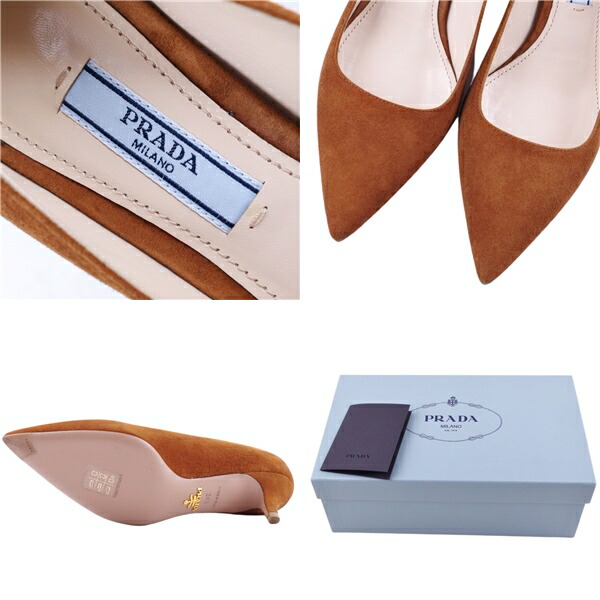 商品名 【極美品】プラダ PRADA シューズ パンプス スウェード レディース ヒール 靴 イタリア製 レザー 山羊革 34.5(21.5cm相当) ブラウン【中古】