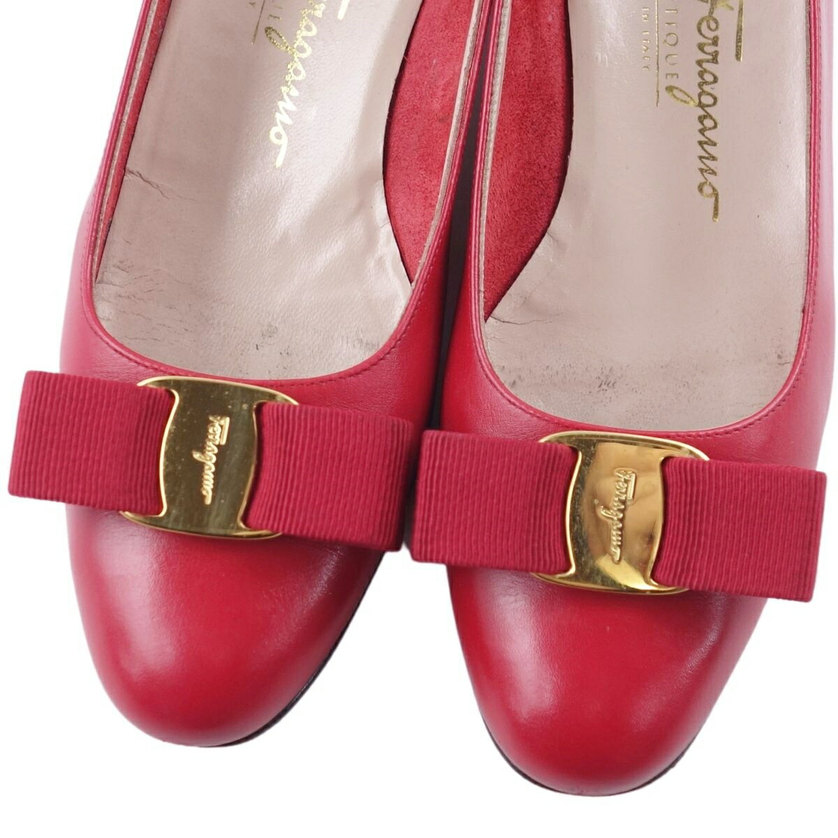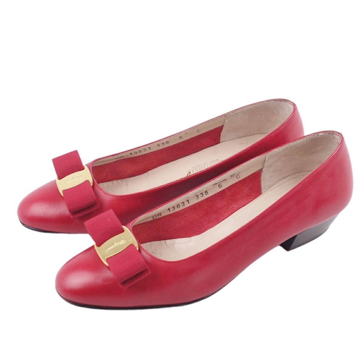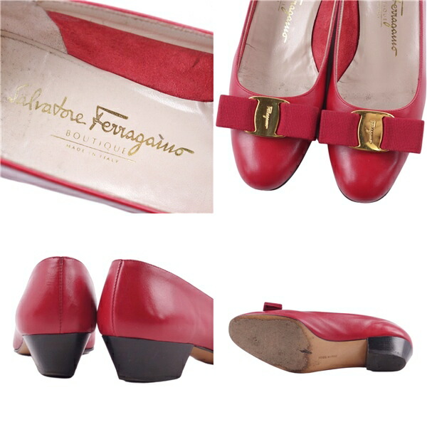 サルヴァトーレ フェラガモ Salvatore Ferragamo パンプス ヴァラ カーフレザー ヒール シューズ 靴 レディース レザー 靴 イタリア製 レッド サイズ6C(23.5cm相当)