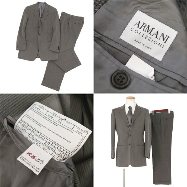 【美品】アルマーニ コレッツォーニ ARMANI COLLEZIONI スーツ セットアップ テーラードジャケット パンツ メンズ 44R(S相当) カーキ【中古】