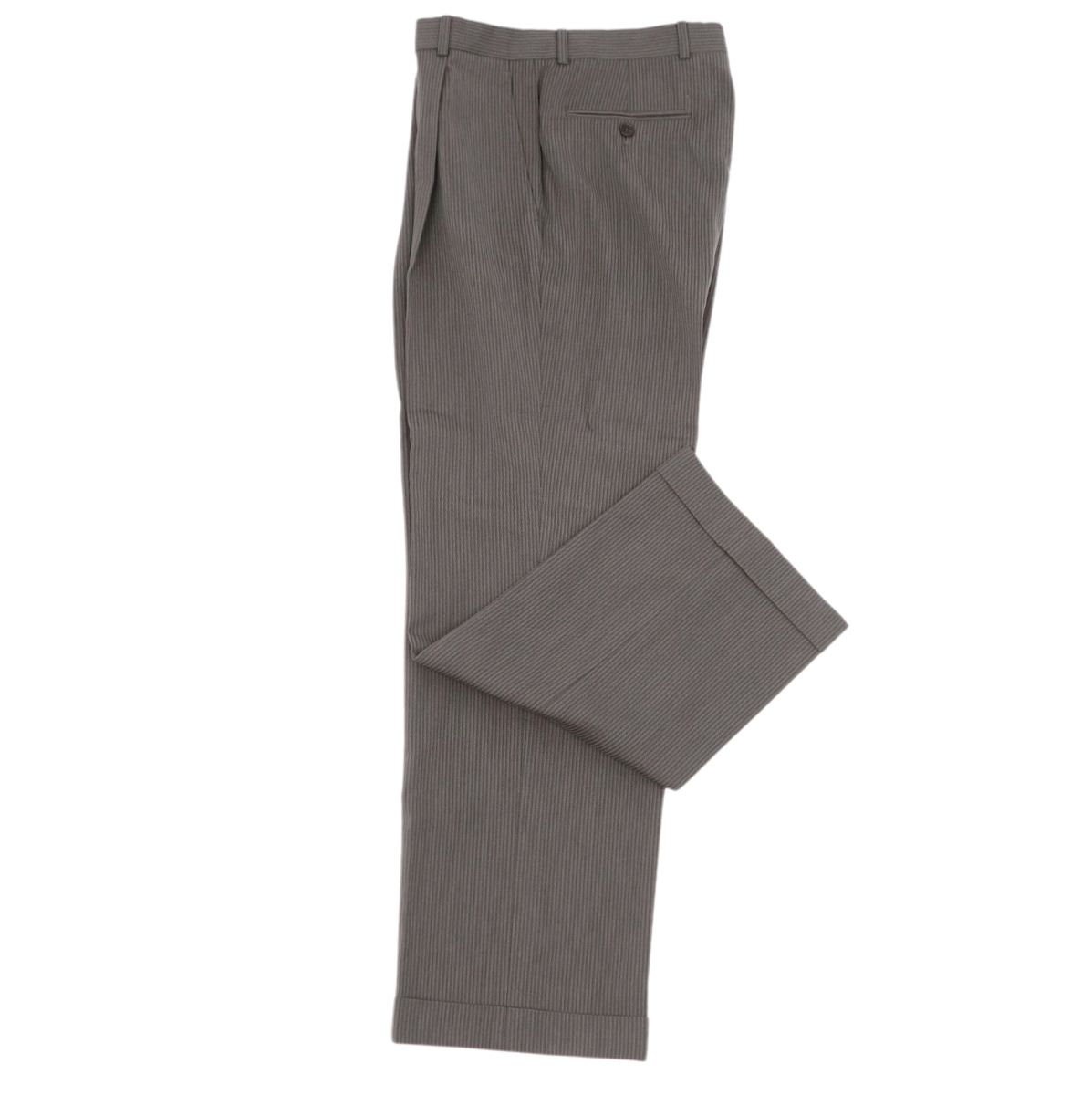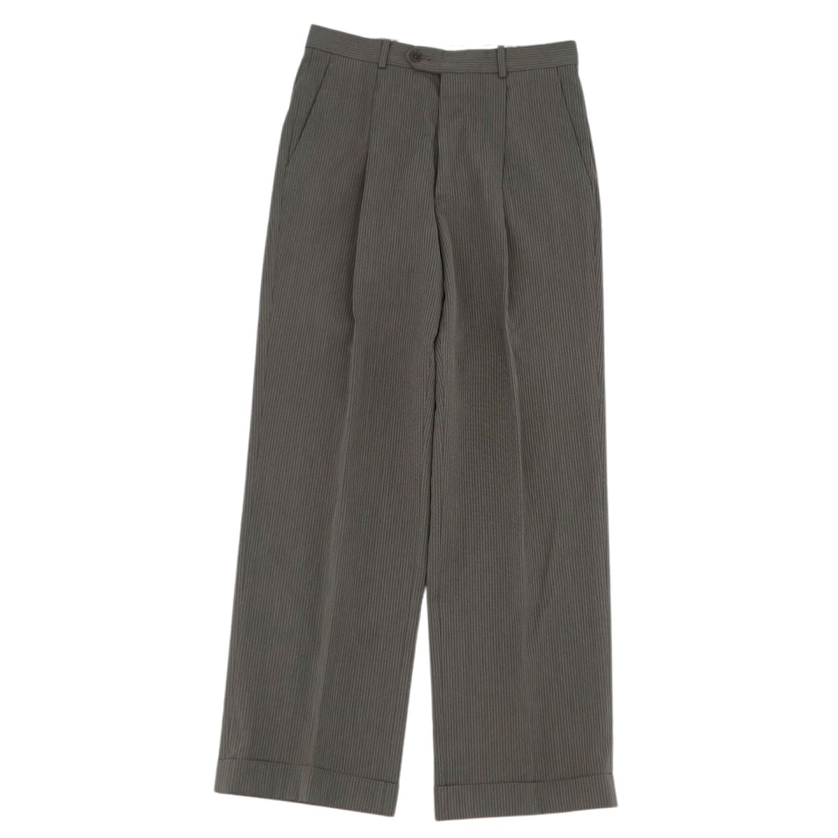 ・ジャケット:シングル、3ボタン、背抜き、サイドベンツ スラックス:ワンタック、裾ダブル仕上げ。