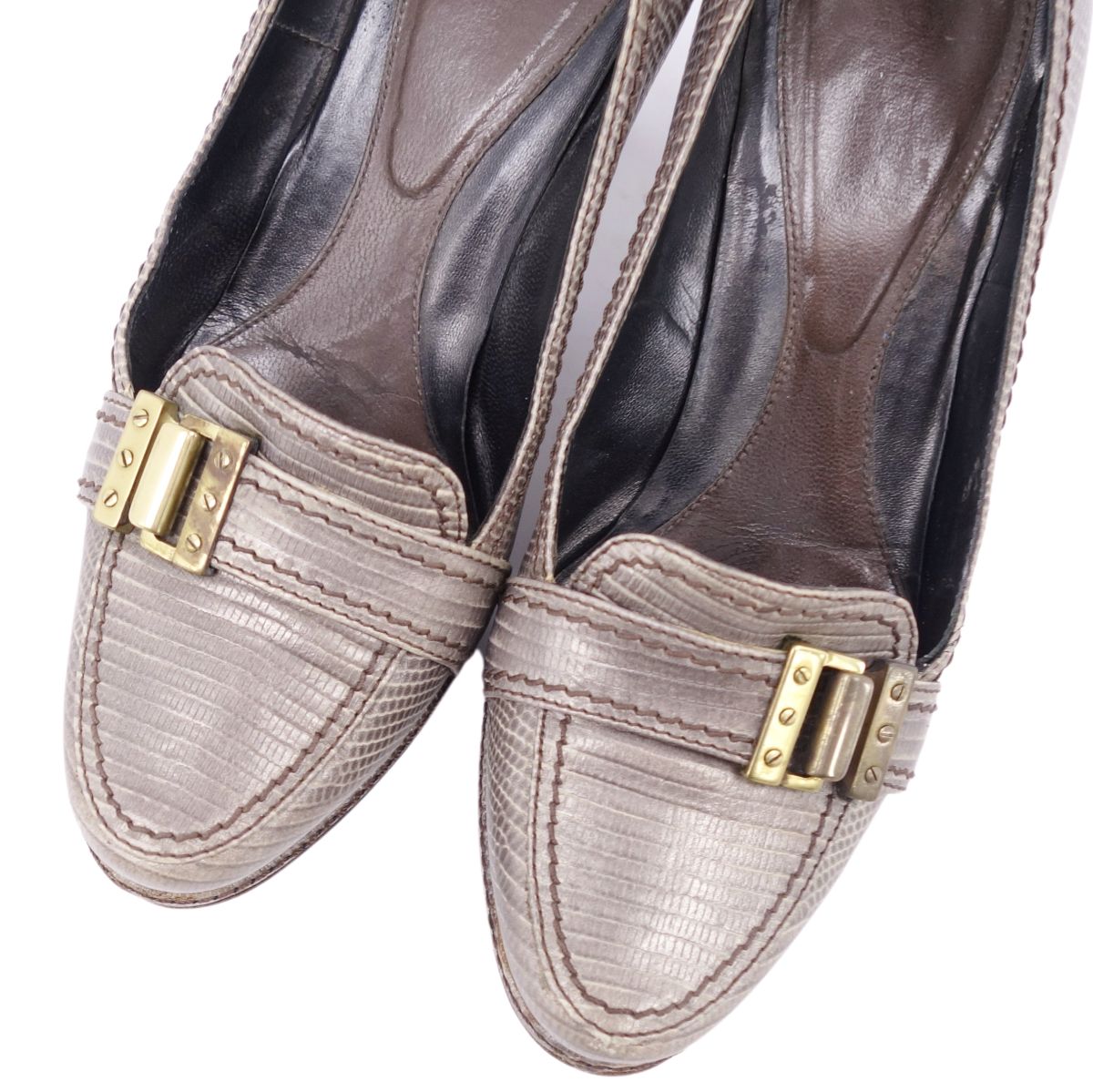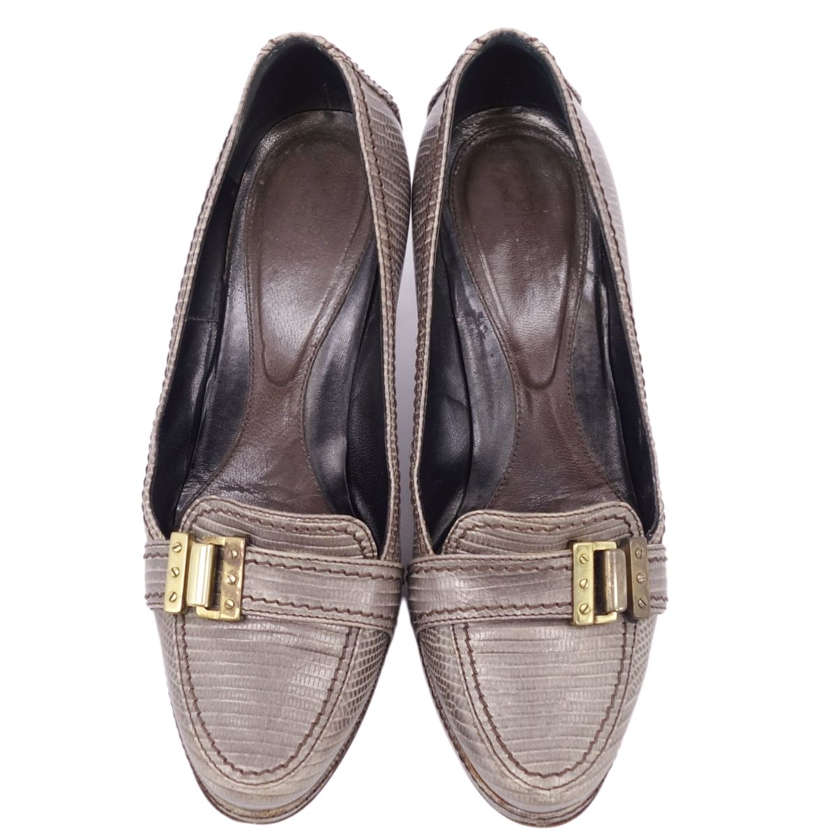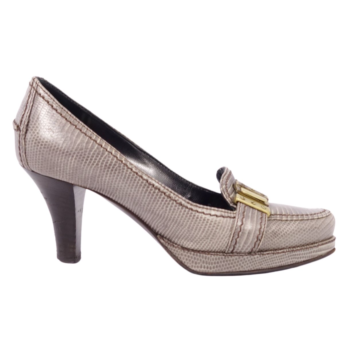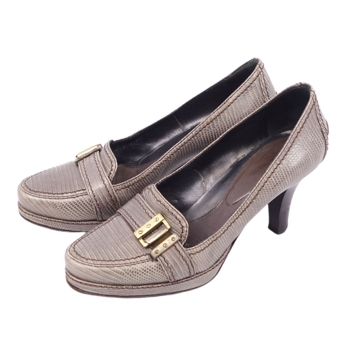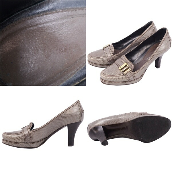 セルジオロッシ SERGIO ROSSI シューズ パンプス リザード型押し ヒール ローファー 革 レディース 靴 グレー サイズ35(23cm相当)