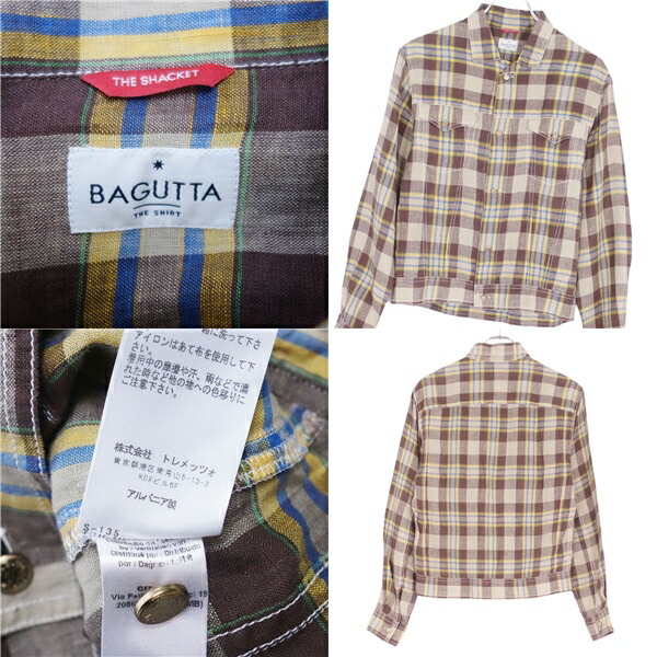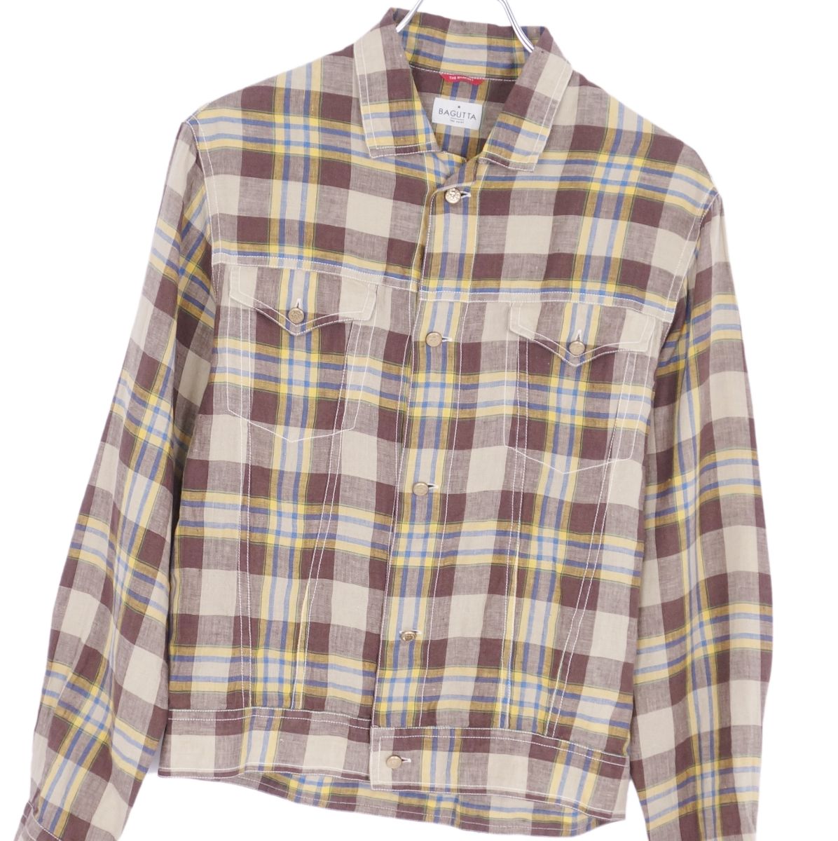 商品名 【新古品】バグッタ BAGUTTA ジャケット マドラスチェック リネン トラッカー メンズ トップス M/L ブラウン【中古】