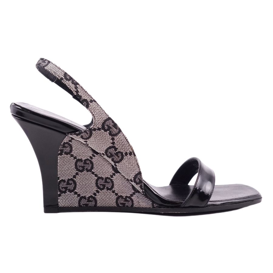 ・ブランドを象徴するGG柄が目を引くGUCCIのウェッジソールサンダルです♪