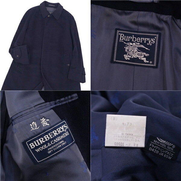 Vintage バーバリー Burberrys コート ウール カシミヤ ステンカラーコート バルマカーンコート メンズ アウター 古着 ネイビー サイズ92-170(M相当)