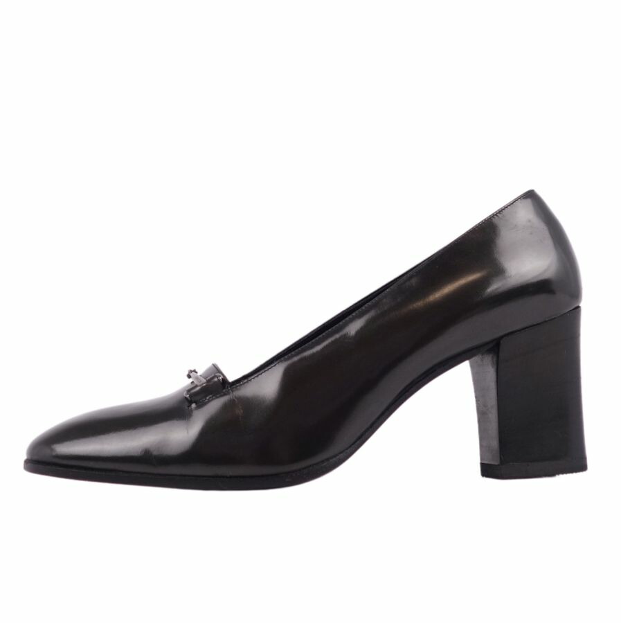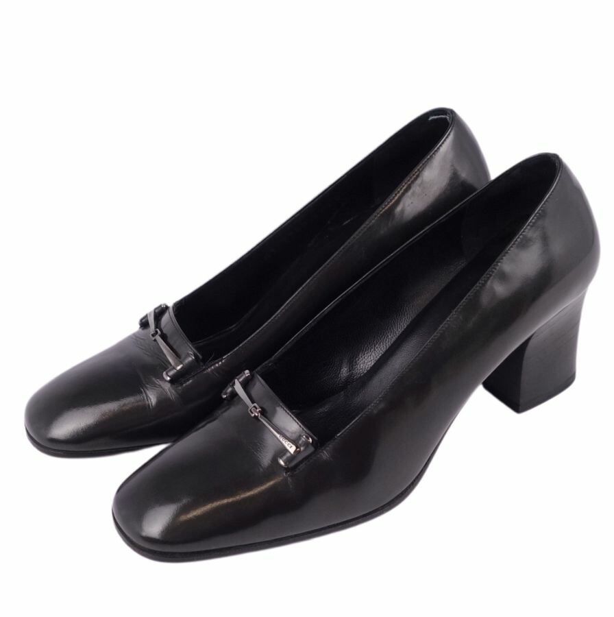 グッチ GUCCI パンプス ホースビット エナメルレザー ヒール シューズ 靴 レディース グレー サイズ37 1/2(24.5cm相当)