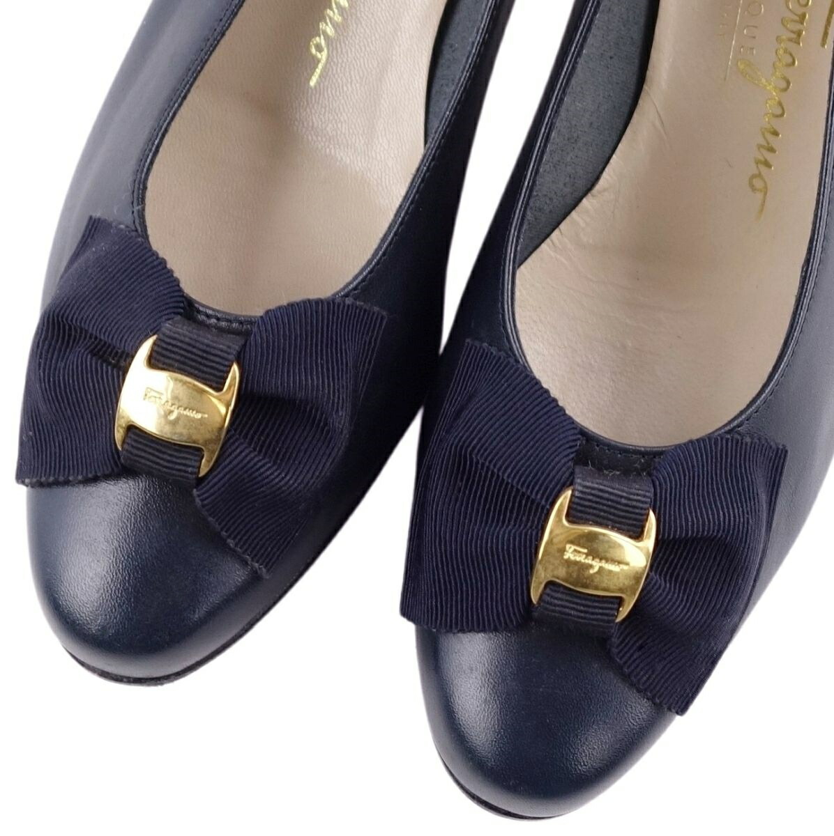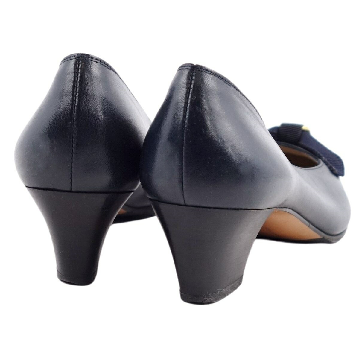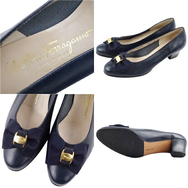 商品名 【美品】サルヴァトーレ フェラガモ Salvatore Ferragamo シューズ パンプス ヴァラ レザー 本革 リボン レディース 靴 イタリア製 6B(23.5cm相当) ネイビー【中古】