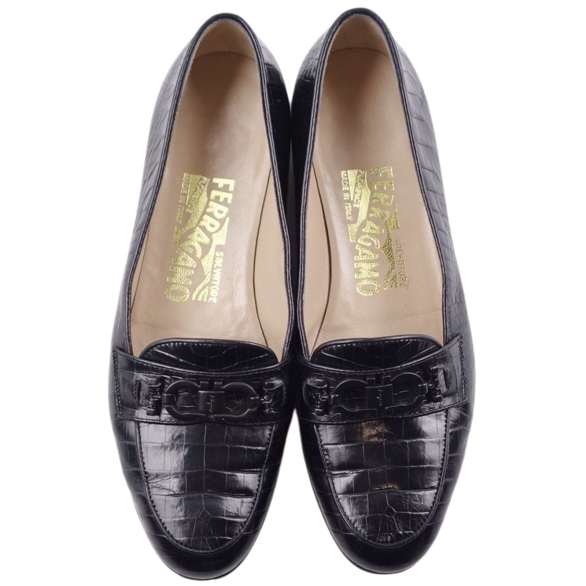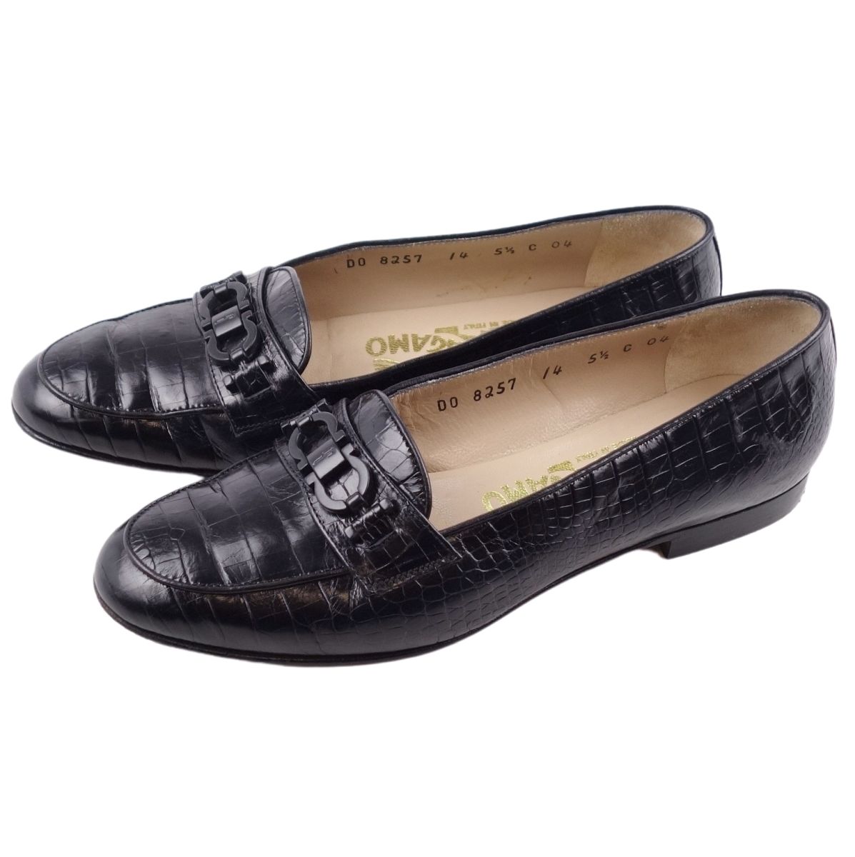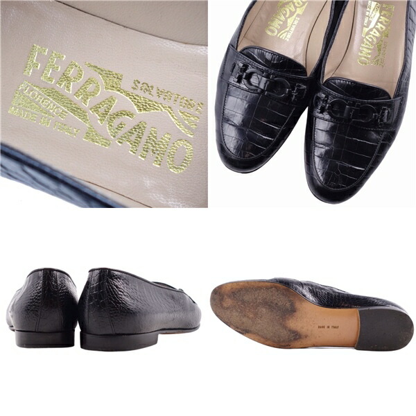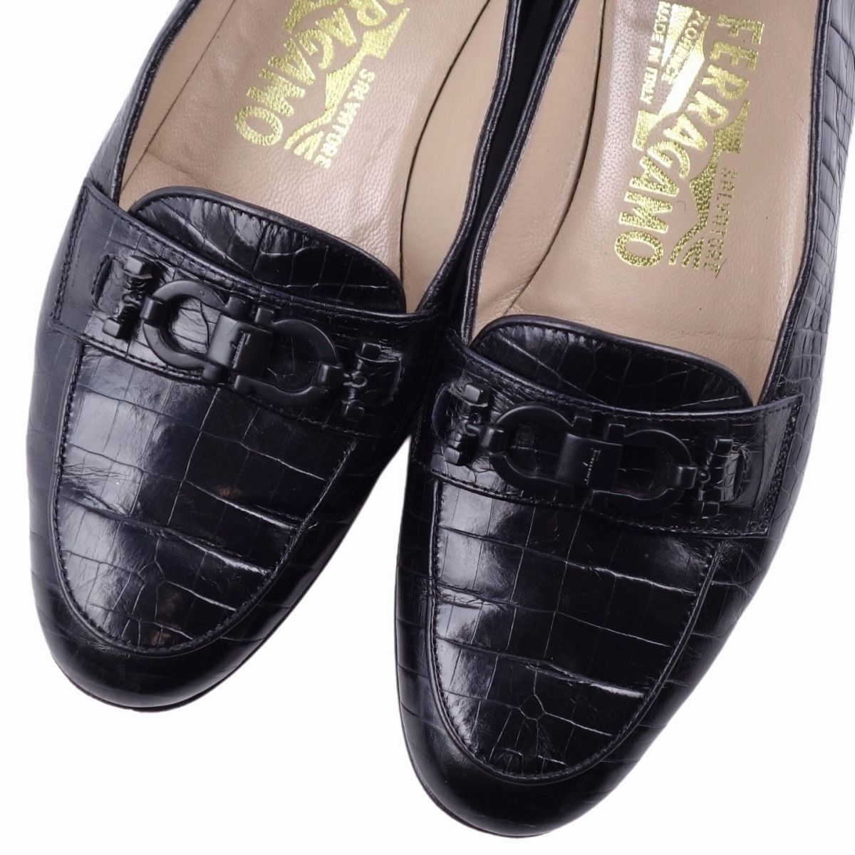 サルヴァトーレ フェラガモ Salvatore Ferragamo シューズ ローファー ガンチーニ クロコ型押し パンプス レディース イタリア製 靴 ブラック サイズ5.5C(23cm相当)