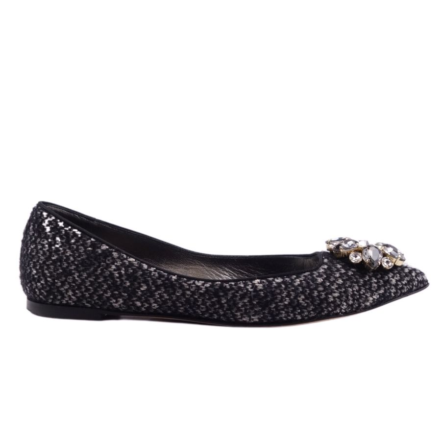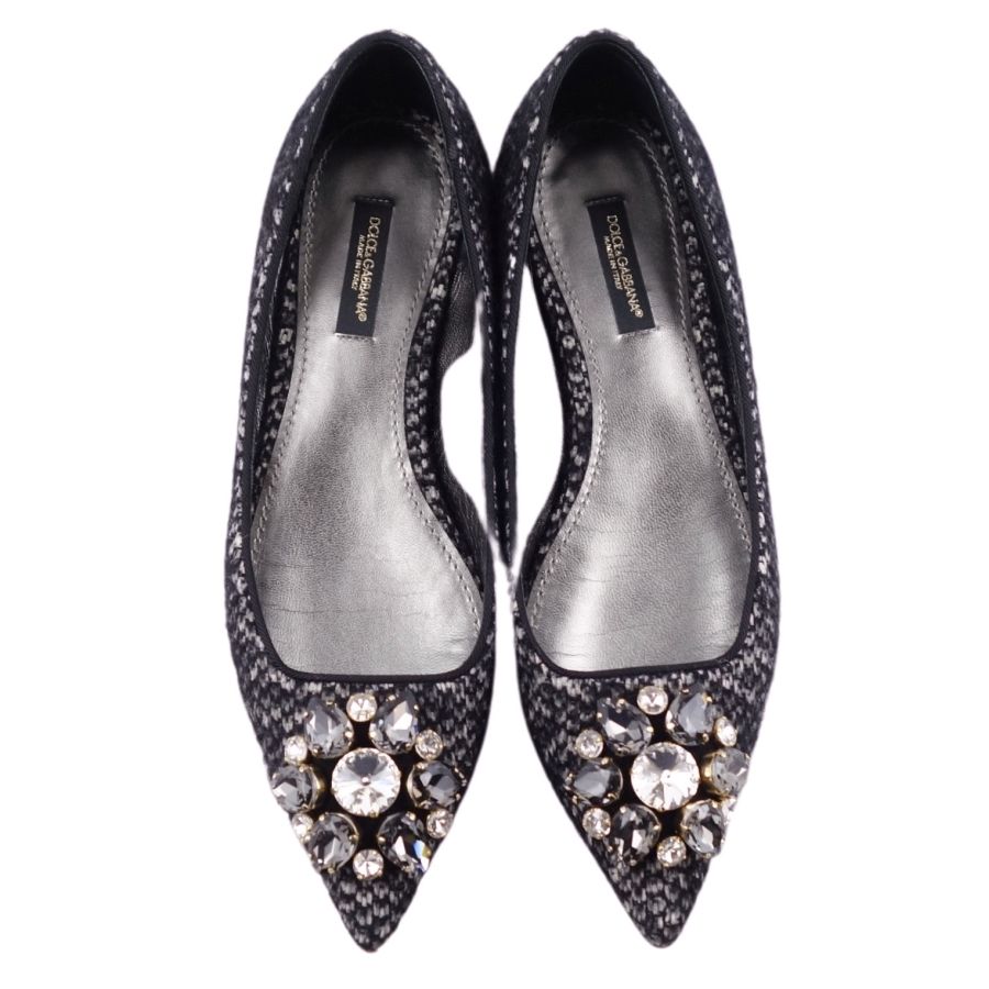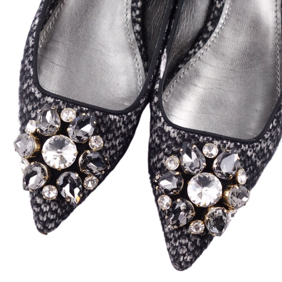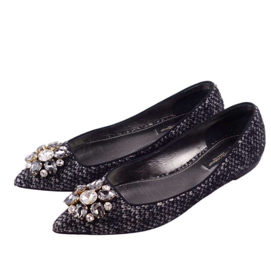 ドルチェ&ガッバーナ DOLCE & GABBANA パンプス フラットパンプス ビジュー装飾 ツイード ヒール シューズ 靴 レディース グレー サイズ35 1/2(22.5cm相当)