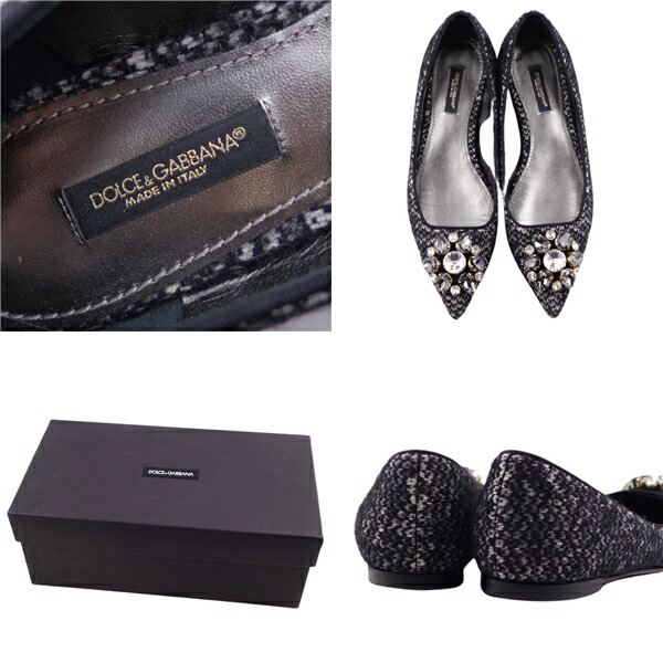 【美品】ドルチェ&ガッバーナ DOLCE & GABBANA パンプス フラットパンプス ビジュー装飾 ツイード ヒール シューズ 靴 レディース 35 1/2(22.5cm相当) グレー レディースシューズ【中古】