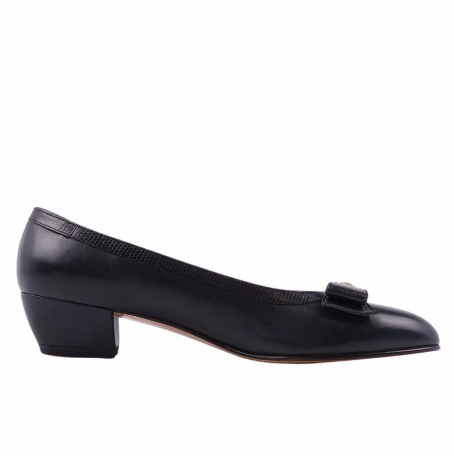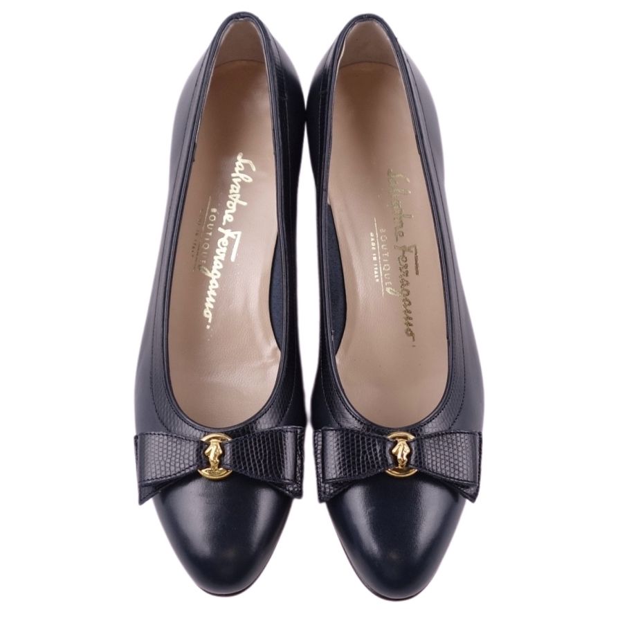 サルヴァトーレ フェラガモ Salvatore Ferragamo パンプス リボン リザード型押し ヒール シューズ 靴 シューズ 靴 レディース ネイビー サイズ7B(24.5cm相当)
