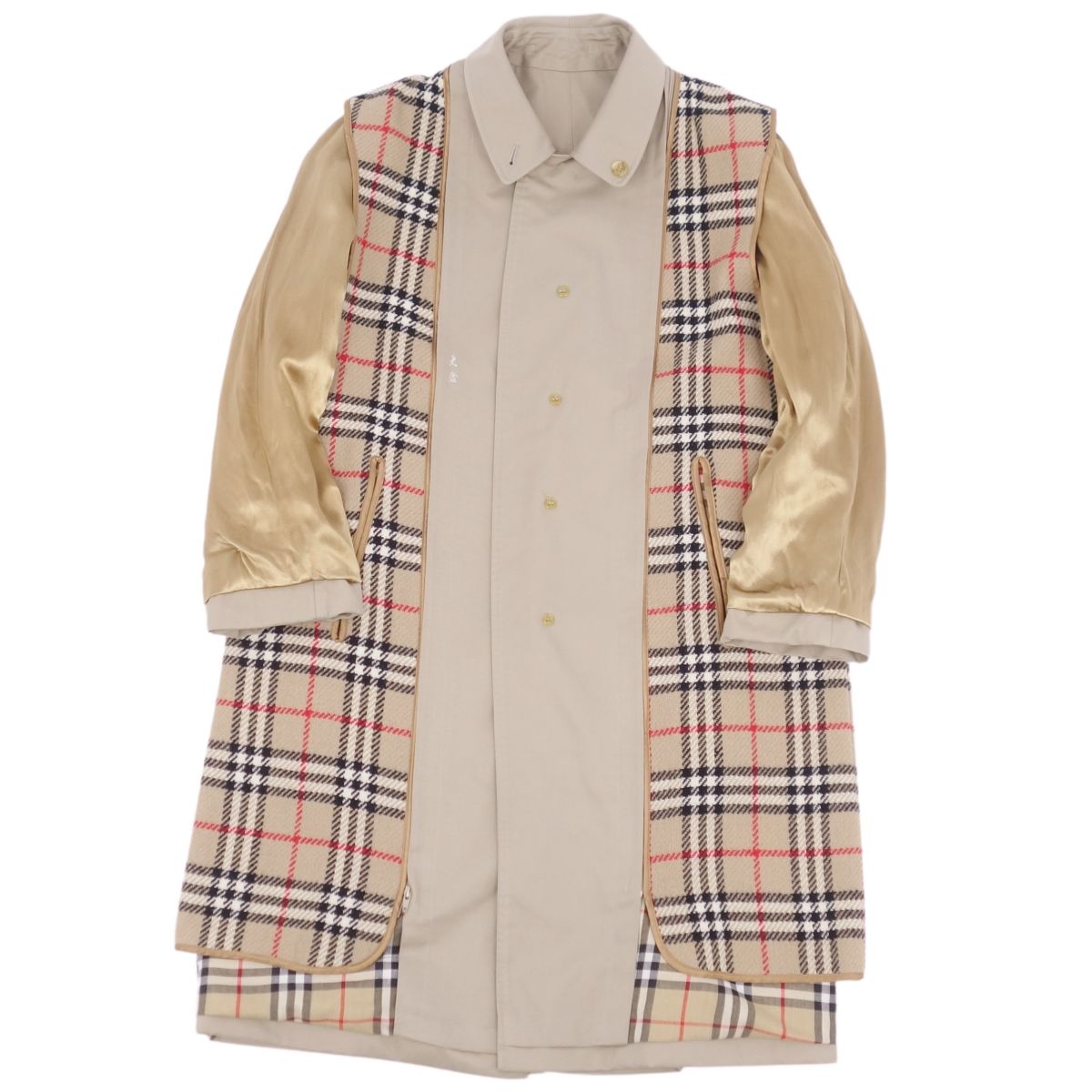 ・表地はコットンギャバジン、裏地はアイコニックなチェックデザイン、肩パットなしで美しいショルダーラインです◎
