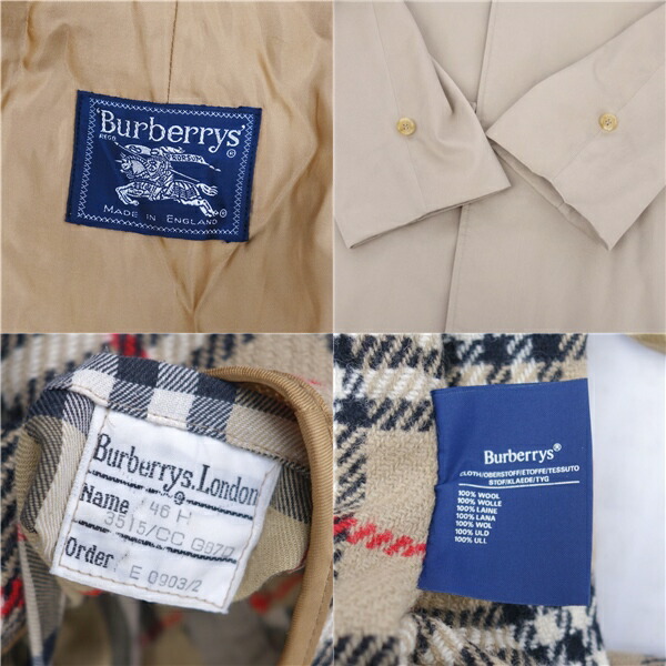 Vintage バーバリー Burberrys コート 英国製 ステンカラーコート バルマカーンコート メンズ ライナー付き アウター 古着 ベージュ サイズ46H(S相当)